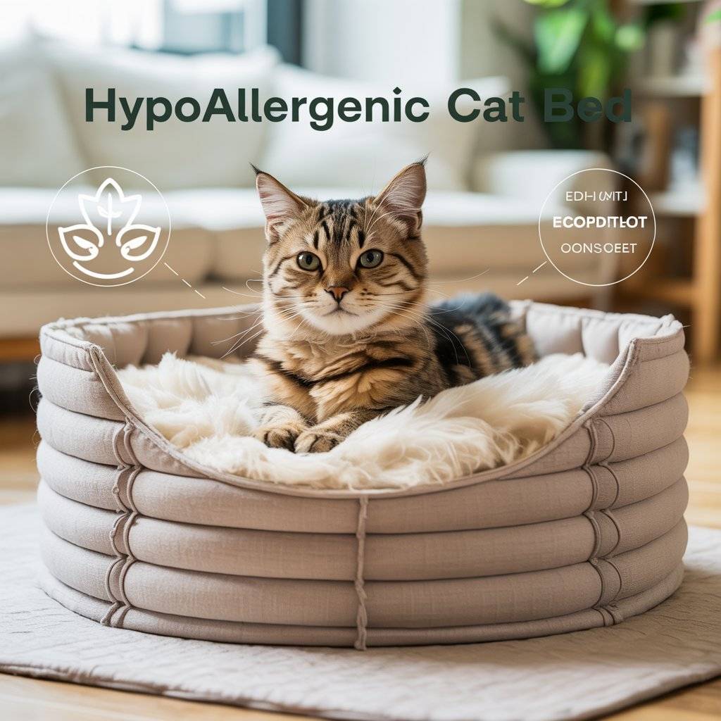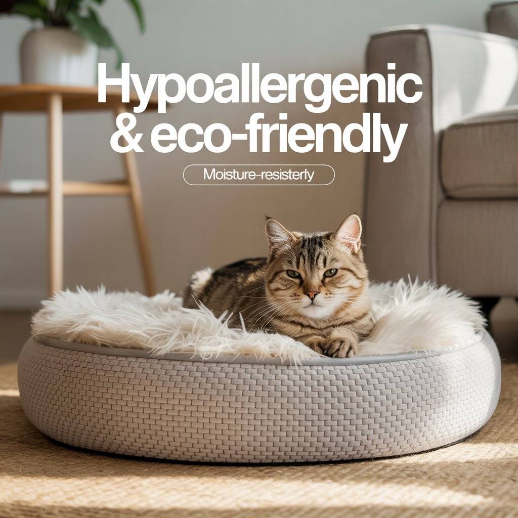 If you need a hypoallergenic cat bed, choose tightly woven fabrics and low-shed seams. These hold less dander and dust. Many beds use hypoallergenic polyester fill, which resists moisture and dries fast.