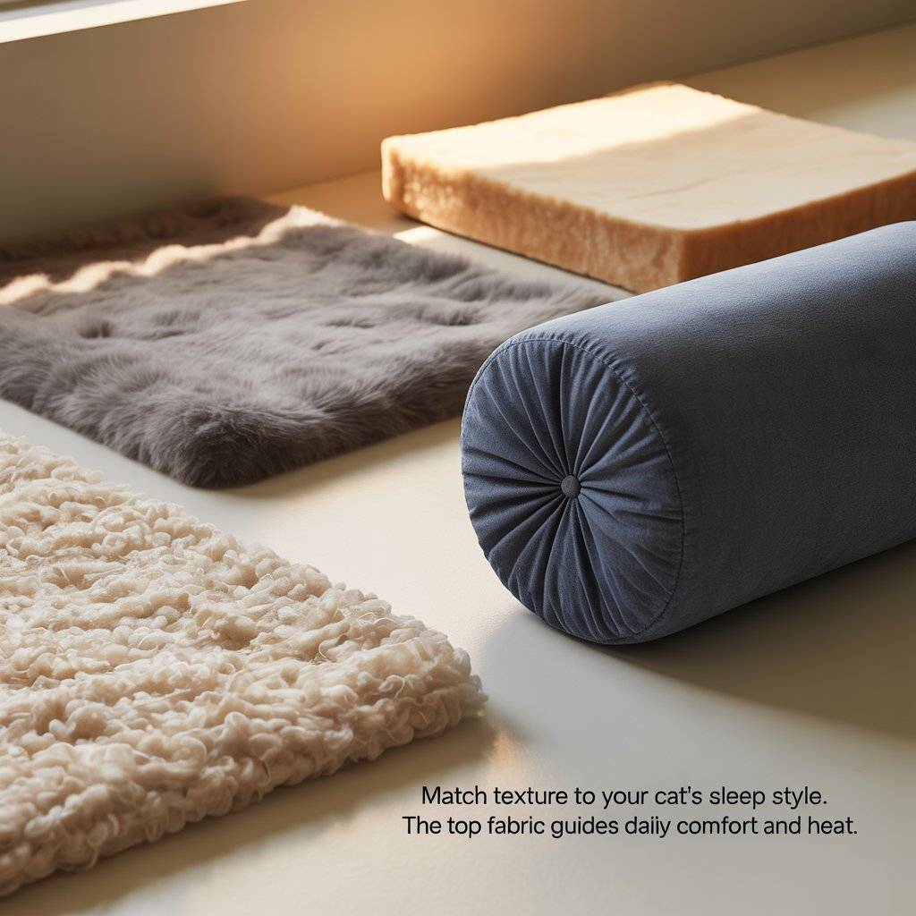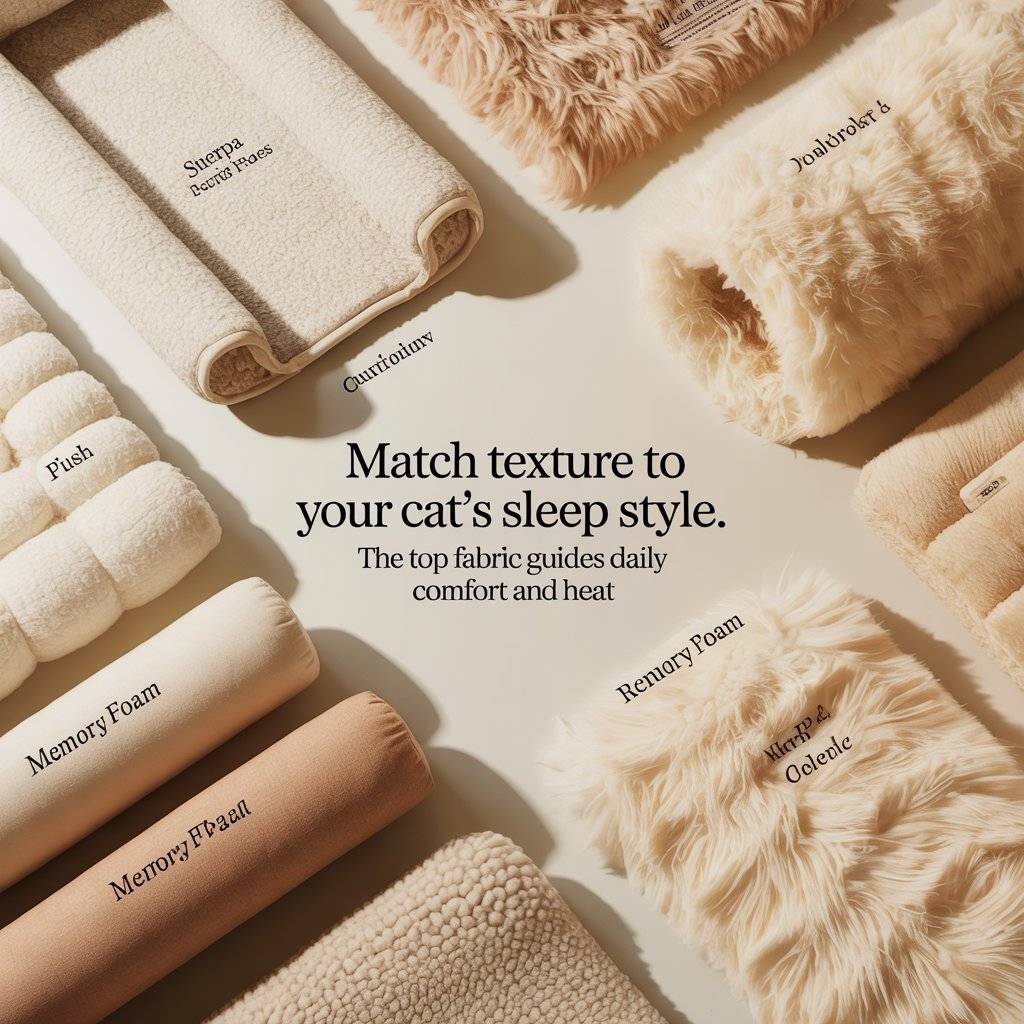 Match texture to your cat’s sleep style. The top fabric guides daily comfort and heat.