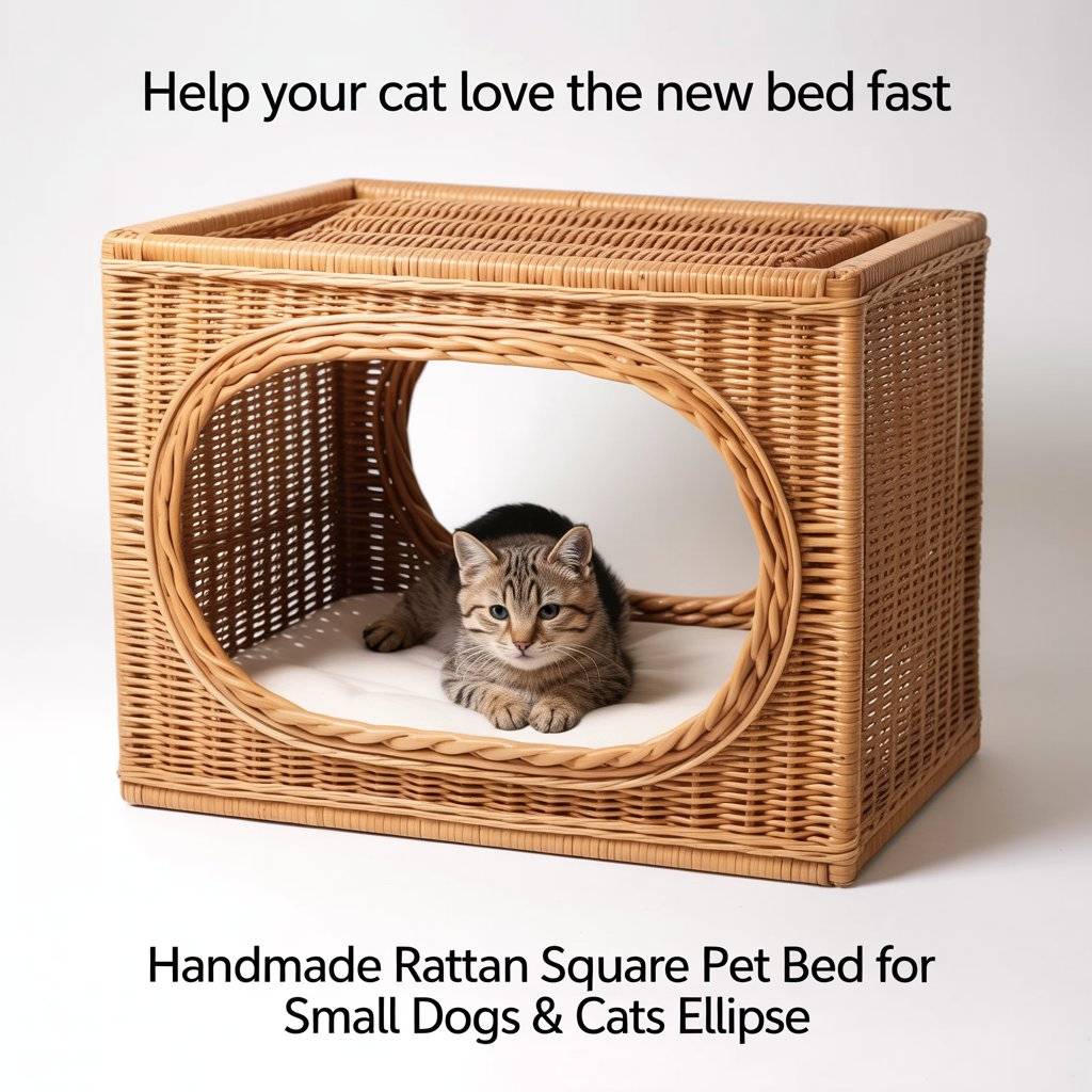 Handmade Rattan Square pet Bed for Small Dogs & Cats Ellipse