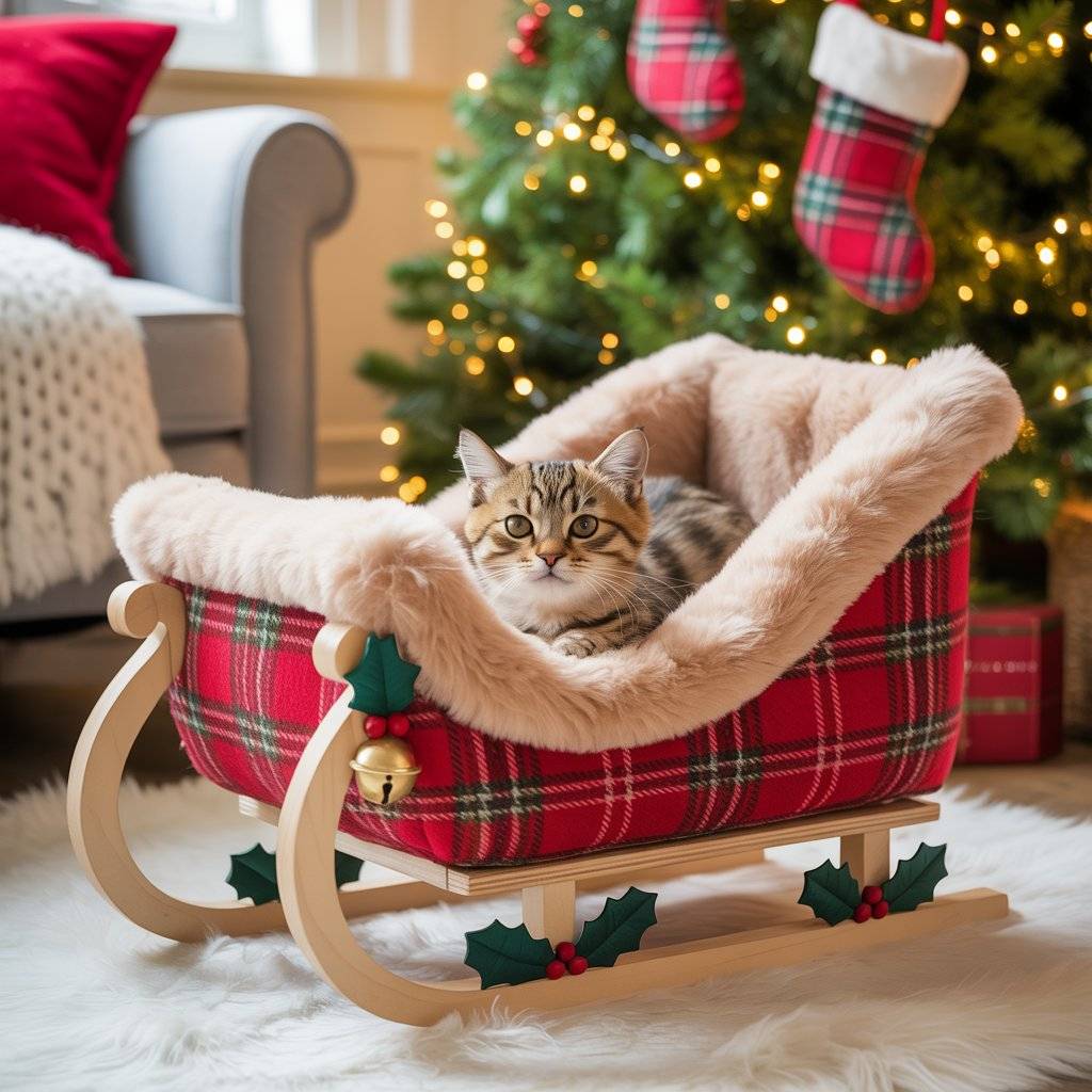 Cozy Christmas Sleigh Cat Bed for Warmth, Calm, and Comfort