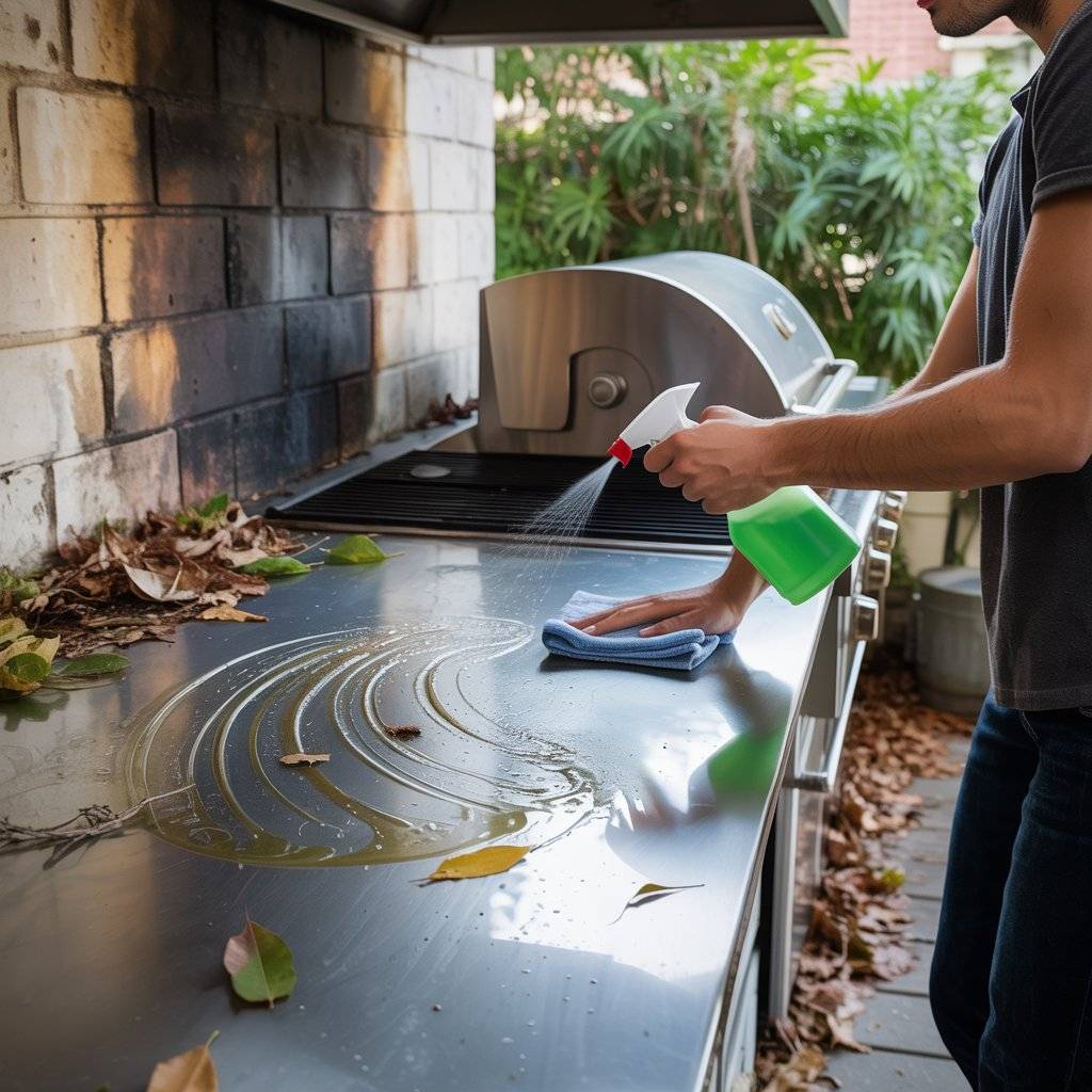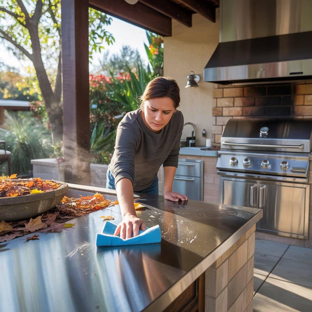 Cleaning an outdoor kitchen is not the same as cleaning indoors. Outside, dirt comes from many places wind, rain splash, dry leaves, and even smoke from cooking. Surfaces can get dusty quickly, especially if the area is not covered. Grease from grilling can also stick to counters and walls, making cleaning harder over time.