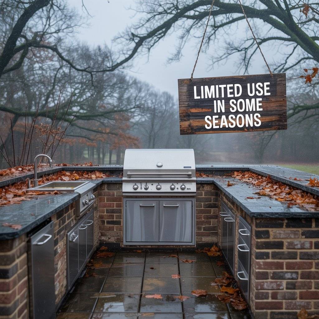 Many people imagine using an outdoor kitchen every day, but in reality, usage often depends on the weather. Cold seasons, rainy days, or strong winds can make outdoor cooking uncomfortable. In some months, the kitchen may stay unused for long periods.