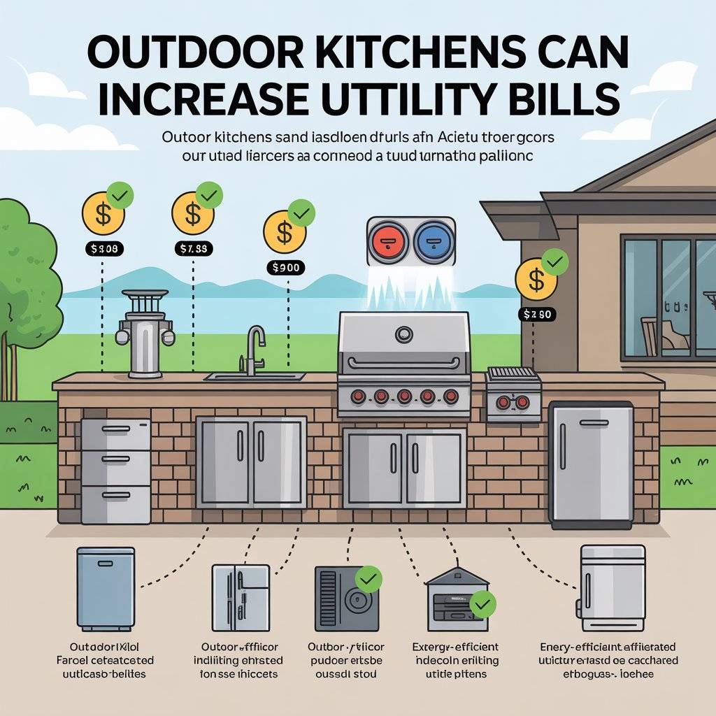 An outdoor kitchen can increase electricity, gas, or water usage. Extra lighting, refrigerators, or sinks all use energy. If you cook outside frequently, these small costs add up over time.