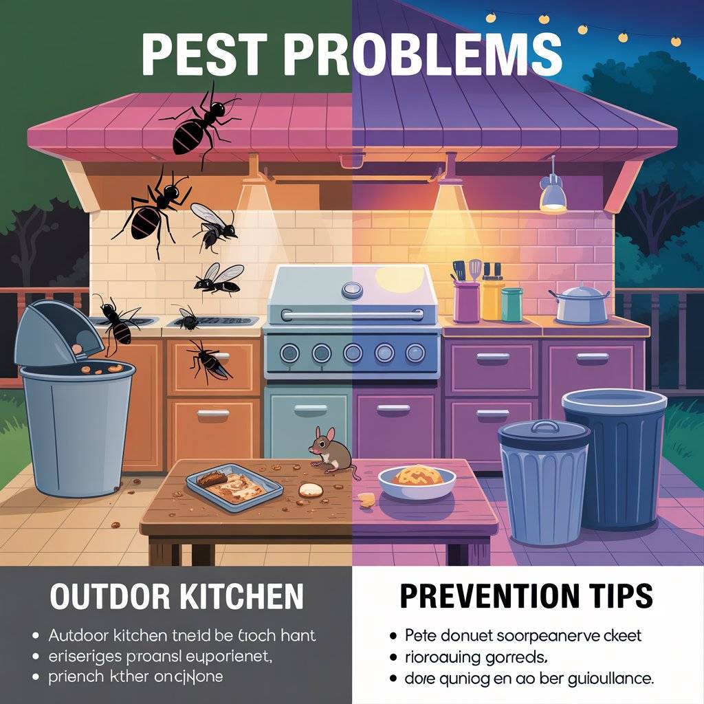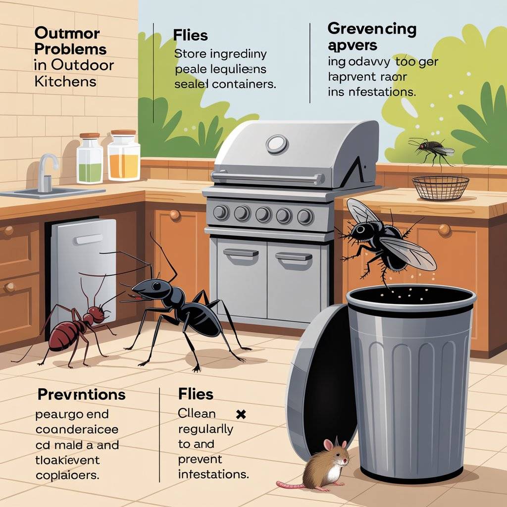 Outdoor kitchens can attract insects and small animals because of food smells. Ants, flies, and even rodents may appear if food residue is left behind. Trash bins placed nearby can also attract pests.