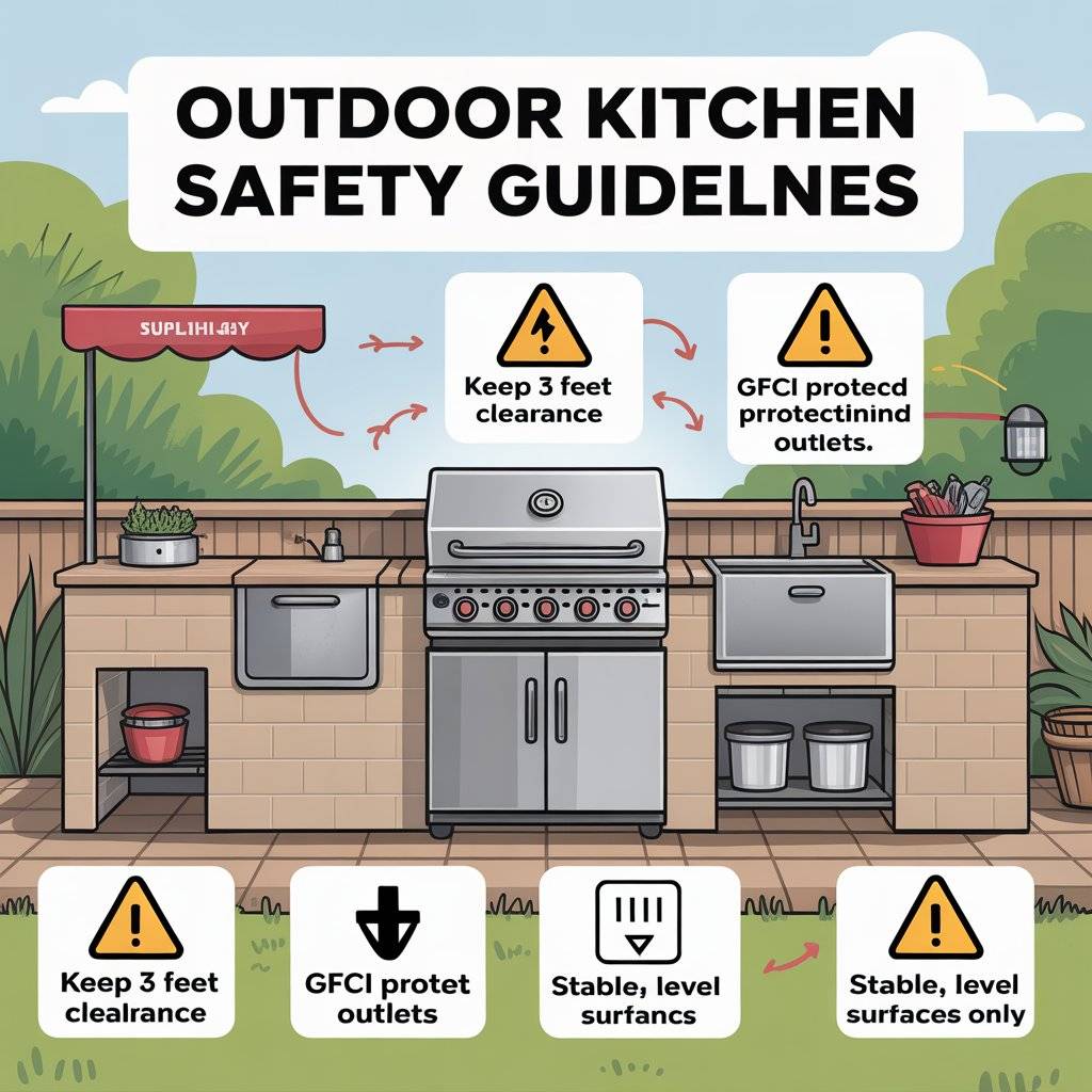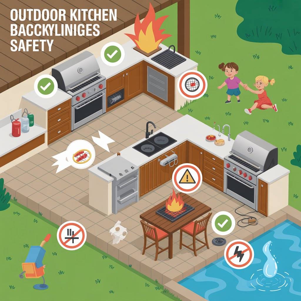Outdoor kitchens involve open flames, hot surfaces, and sometimes electrical connections. Safety must be considered carefully, especially if children are present. Wind can affect flames, and uneven ground may increase the risk of accidents.