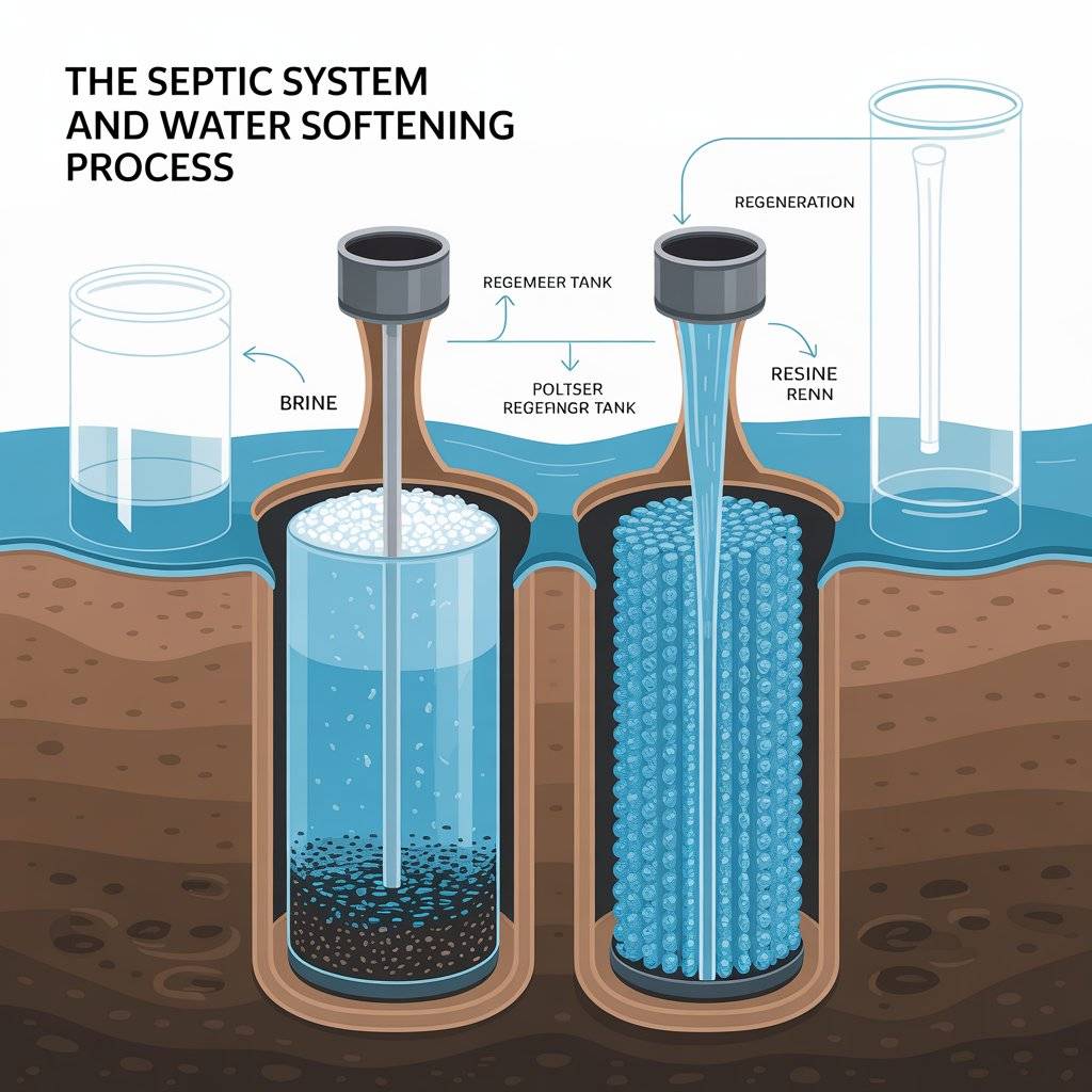 The concern of discharging water softeners resin into an on-site septic system in most American households arises out of a belief that sodium salts used by water softeners during the regeneration stage, or the increased amount of water entering into the system, may be hazardous and can have a direct impact on bacterial life forms.