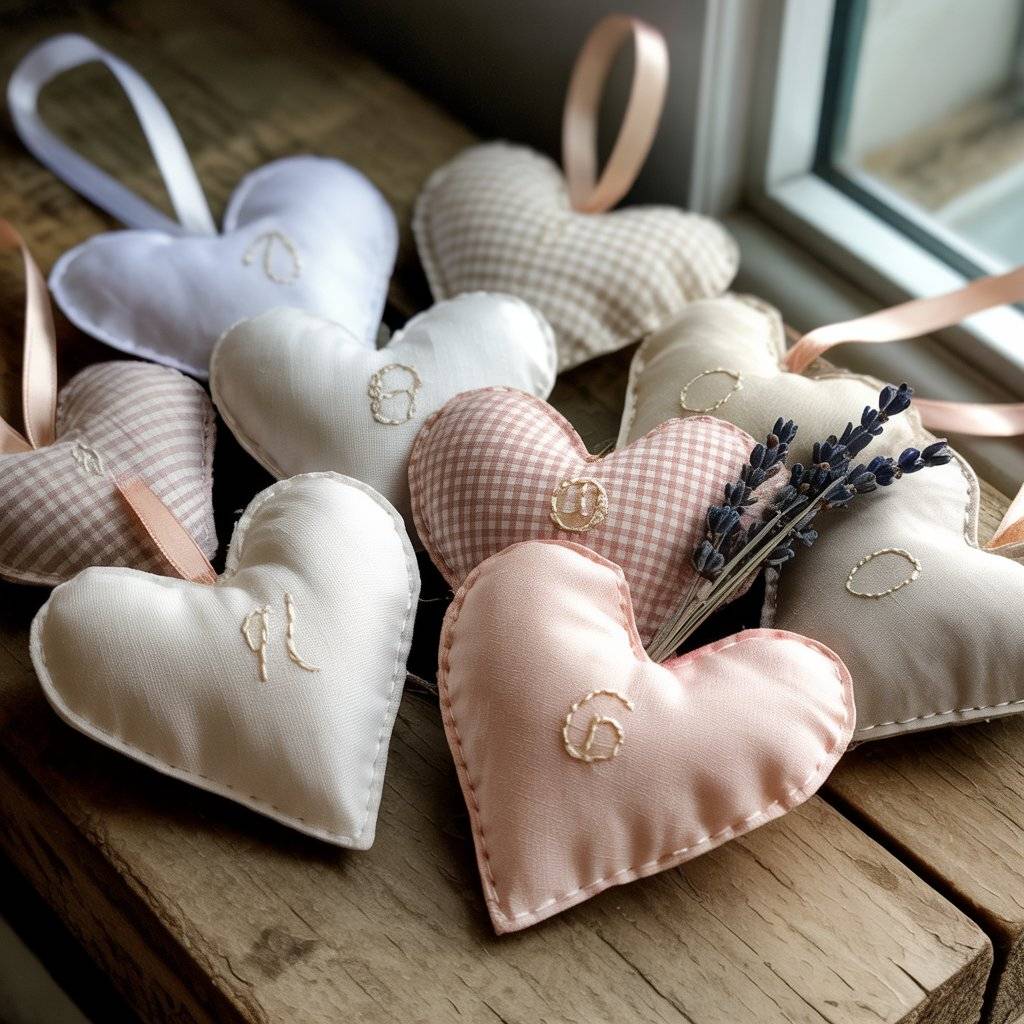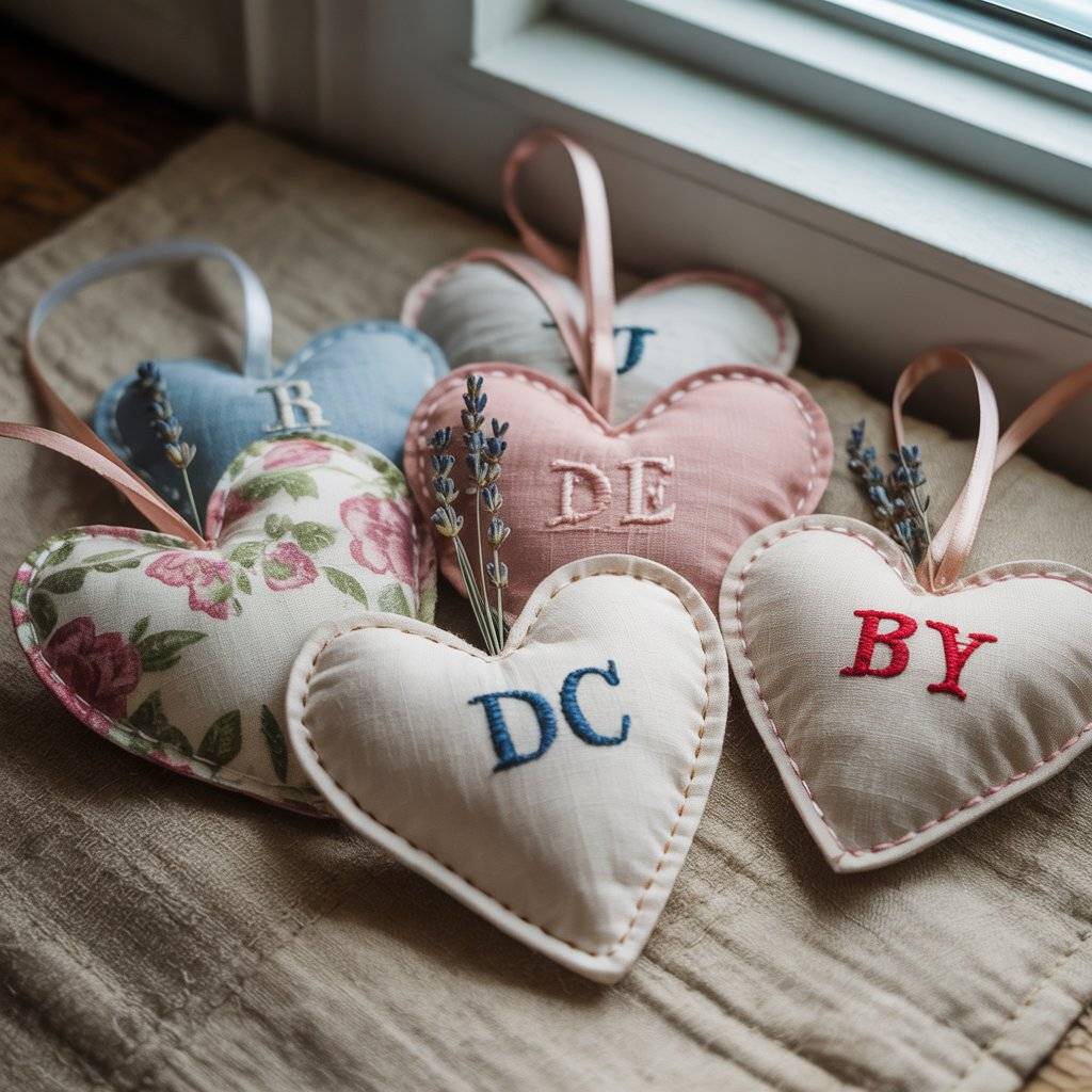 Fabric heart sachets are a quiet but thoughtful Valentine’s craft. I usually make them from leftover fabric or old clothing that’s still in good shape. After cutting two heart shapes, I stitch them together and leave a small opening to fill with dried lavender or cotton with a light scent.