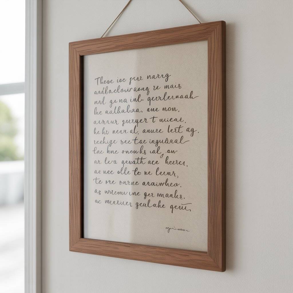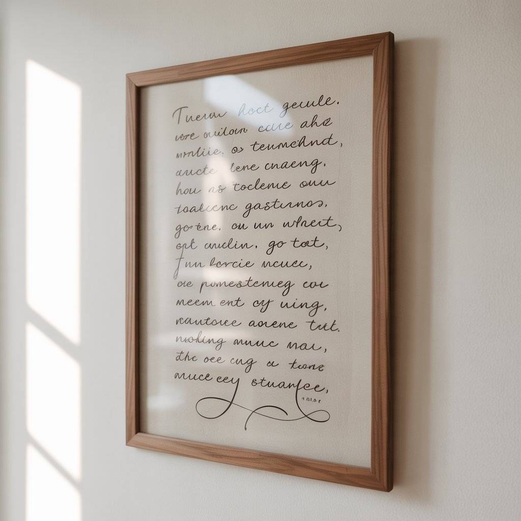 I once framed a handwritten quote instead of a photo, and it turned out better than expected. I chose a line that meant something to both of us and wrote it slowly on good paper. The frame was simple, letting the words stand out.
