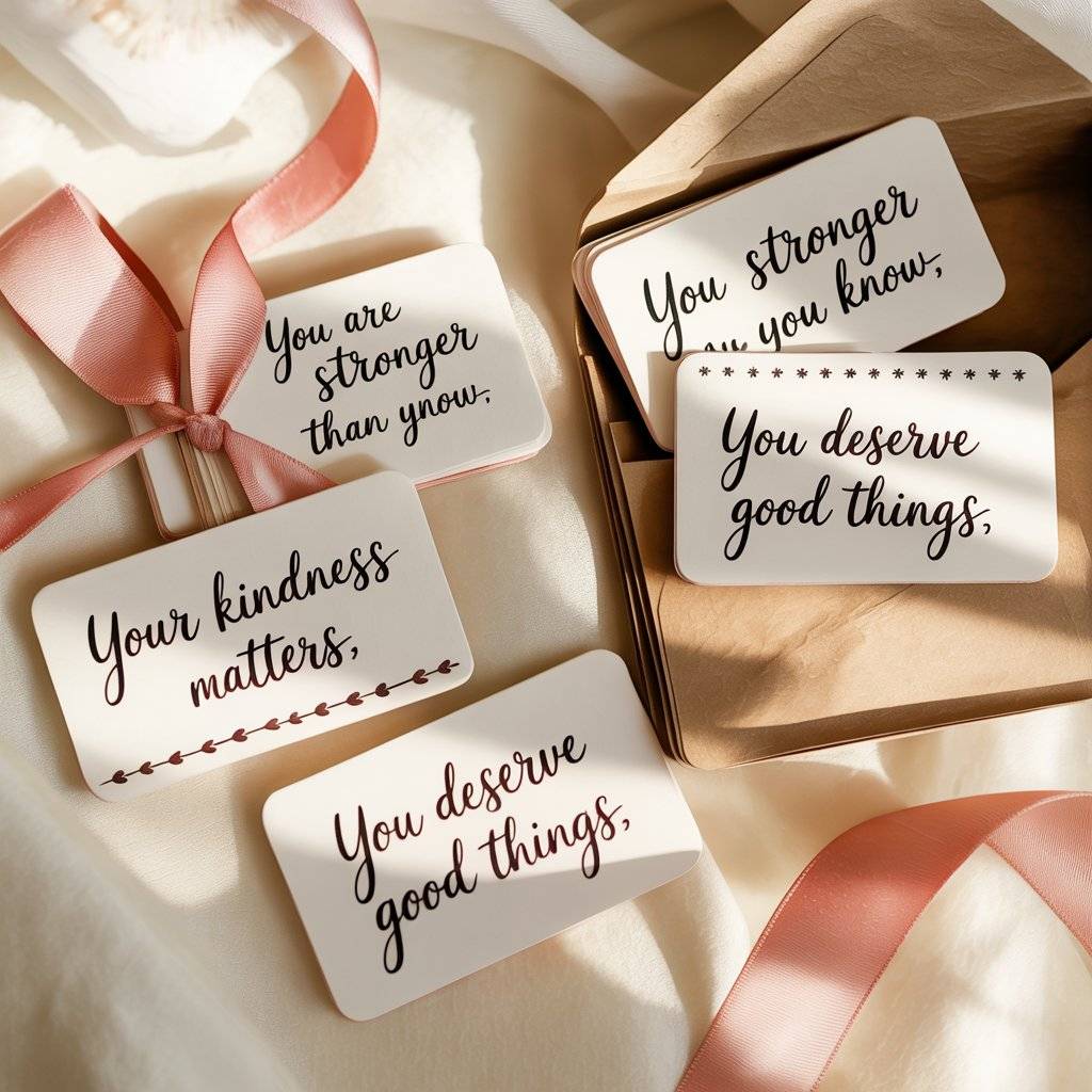 This craft works well for partners, friends, or even teens. It’s gentle and supportive, not dramatic. People can read one card a day or keep them nearby. What makes it special is that every sentence is written with a specific person in mind. It’s thoughtful, comforting, and quietly cute.