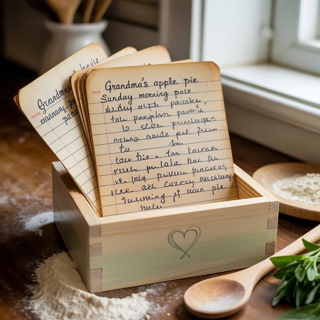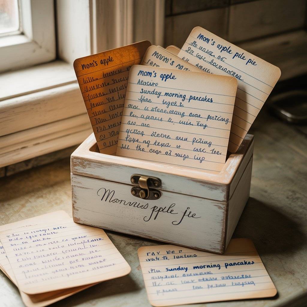 The box itself was simple, painted lightly with a name or date. The real value was the handwriting and the shared memories behind each recipe. Some notes explained when we first made the dish or why it mattered.