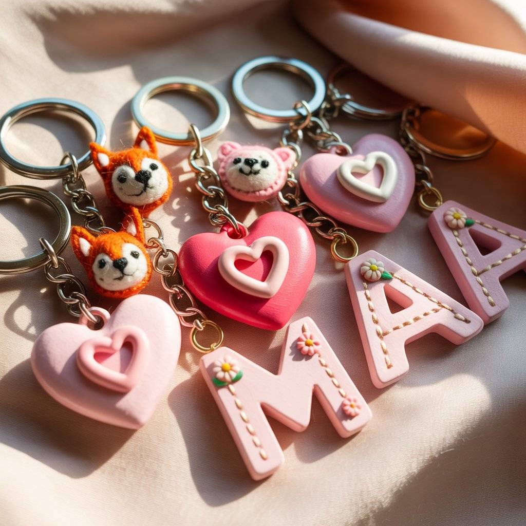 I once made simple love-themed keychains using polymer clay or felt. I cut shapes like hearts, initials, or tiny animals, then attached a small keyring. Some I left plain, while others had a tiny painted or stitched detail.