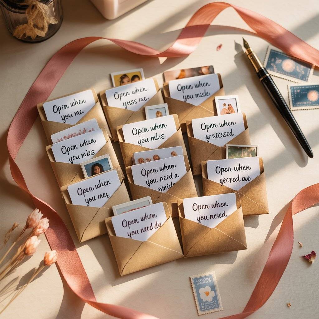 I usually bundle the envelopes together with string or place them in a small box. This works well for partners and close friends. It’s cute without being loud, and thoughtful without being heavy. People tend to keep these for a long time because each envelope feels like a small surprise waiting to be opened.