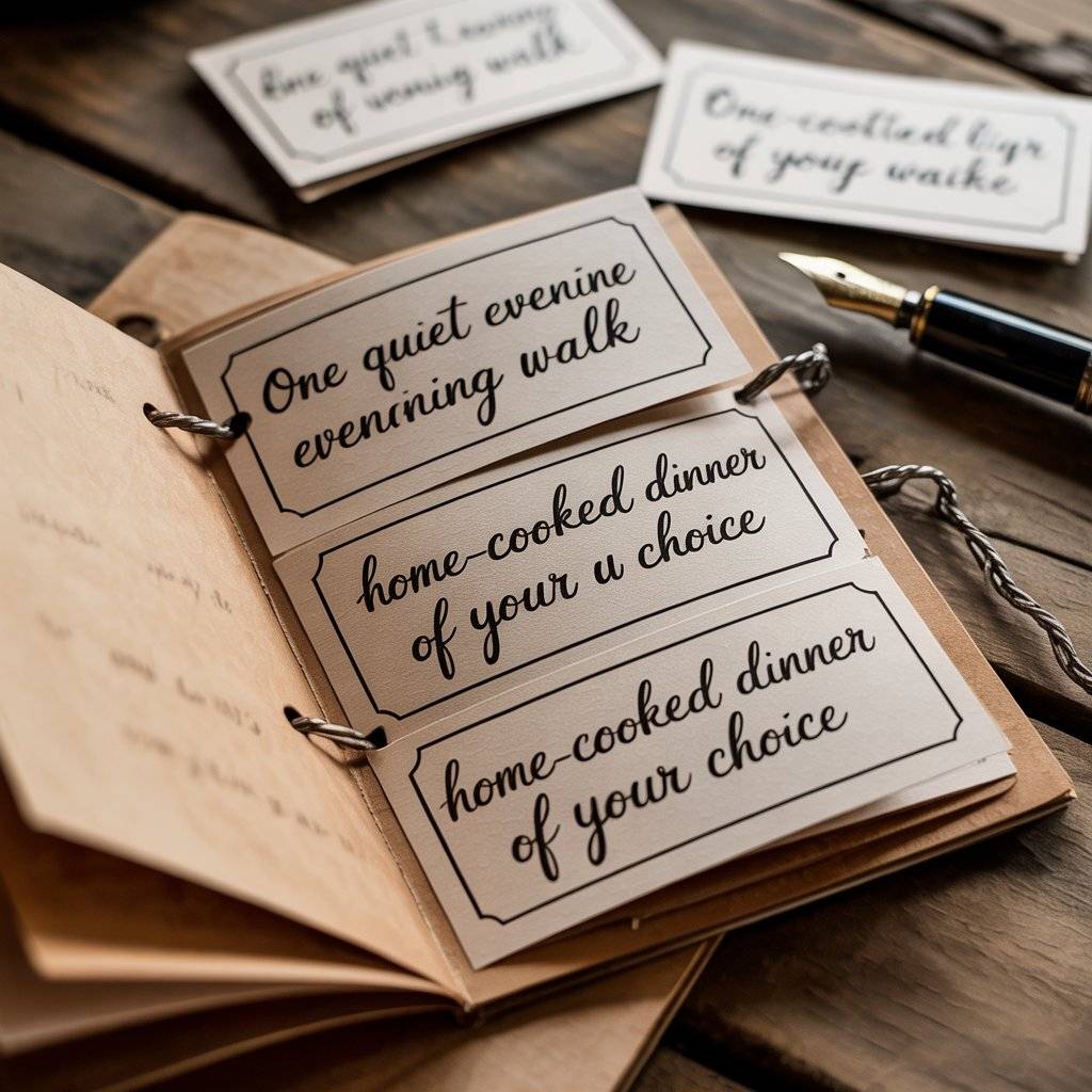 The key is keeping the coupons realistic. Promises should be easy to keep and meaningful, not grand or dramatic. I also left a few blank pages so the person could add their own requests later.