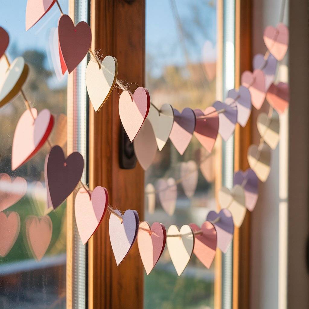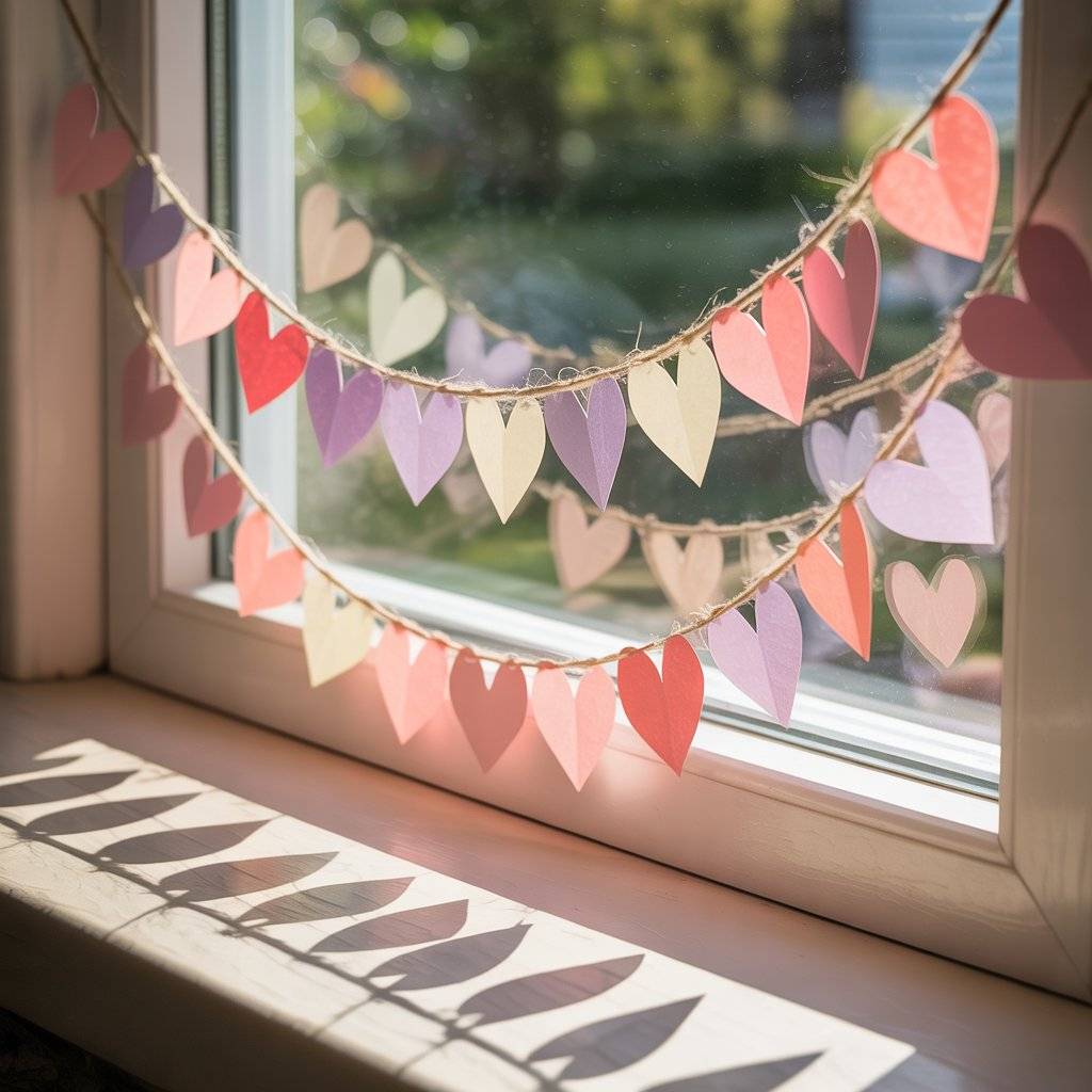 A tiny heart garland is one of those cute crafts that instantly brightens a space. I cut small hearts from colored paper or felt, then threaded them on twine or string. You can hang it over a mirror, along a shelf, or across a window.