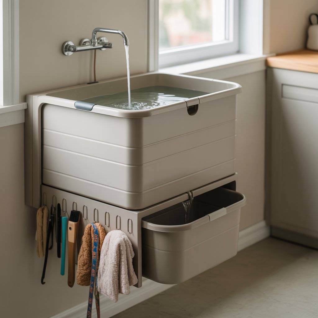 It’s a neat, space-saving solution that looks clean and keeps water where it belongs. If you don’t have space for a big station, this is a smart way to bring pet grooming into your home without a mess.