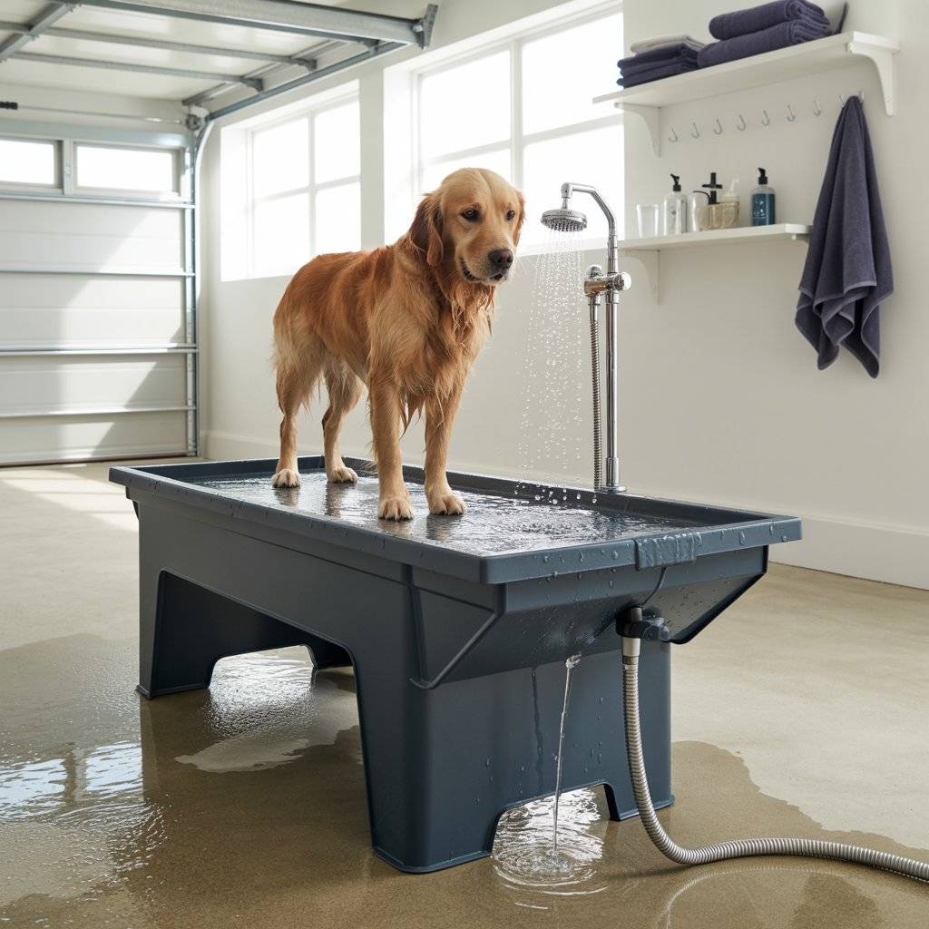 This setup is especially helpful for medium to large dogs who don’t fit well in a sink, and it keeps water off your garage or patio floor. It takes a bit of planning to get the height right, but once it’s done, bath time becomes faster, cleaner, and less of a workout.