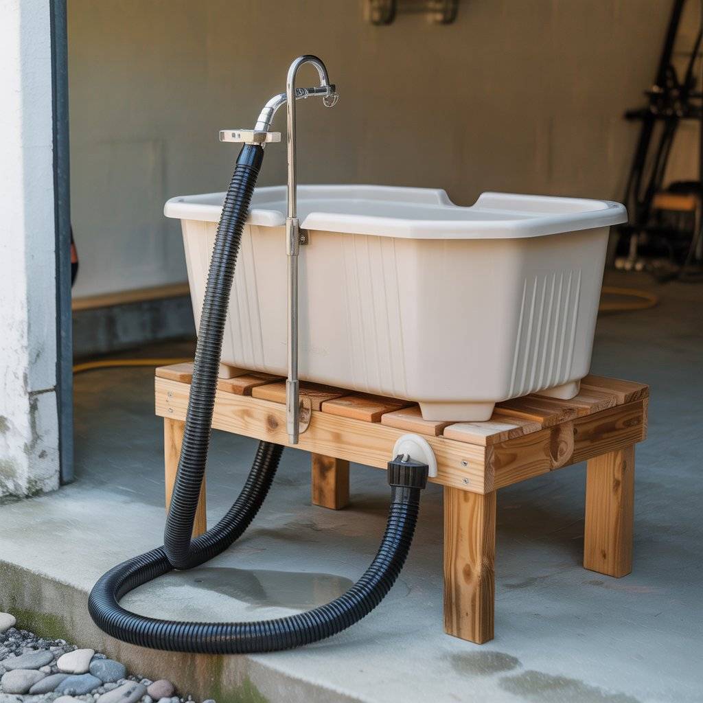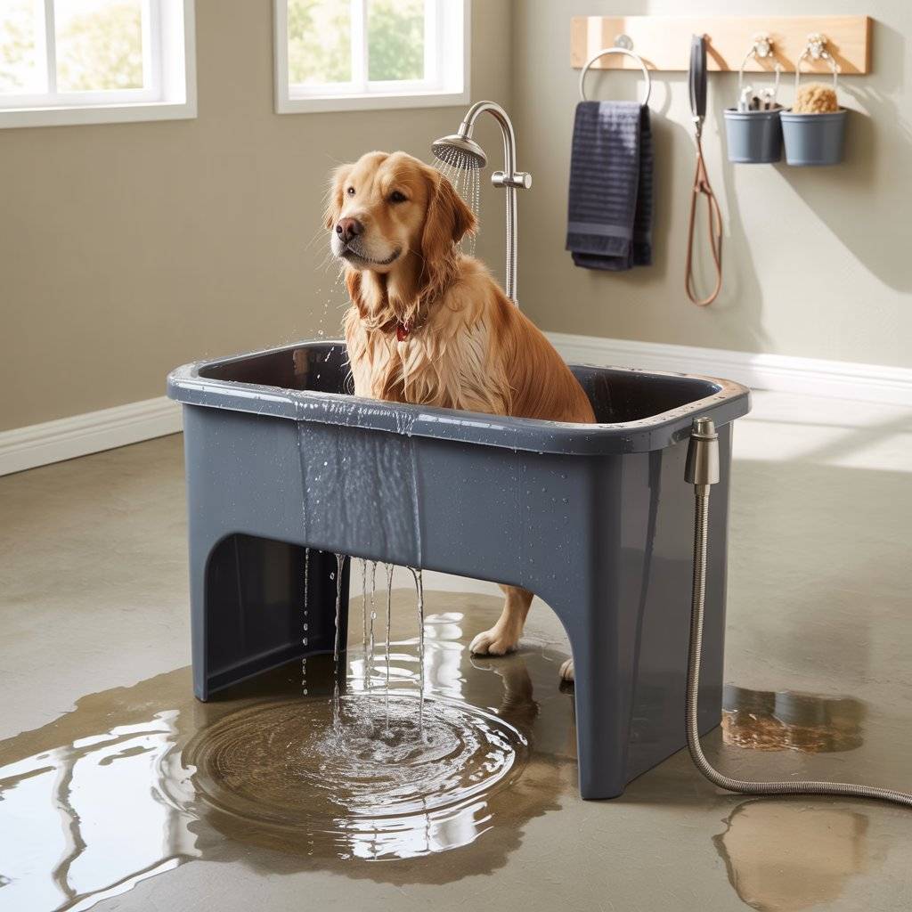 What makes this idea work is the drain hose   instead of lifting the tub or worrying about buckets, water flows right out where you want it. I position the hose toward a floor drain or a large container if I’m outdoors. Add a handheld sprayer or detachable shower head, and you’ve got a grooming station that feels more like a mini pet salon.