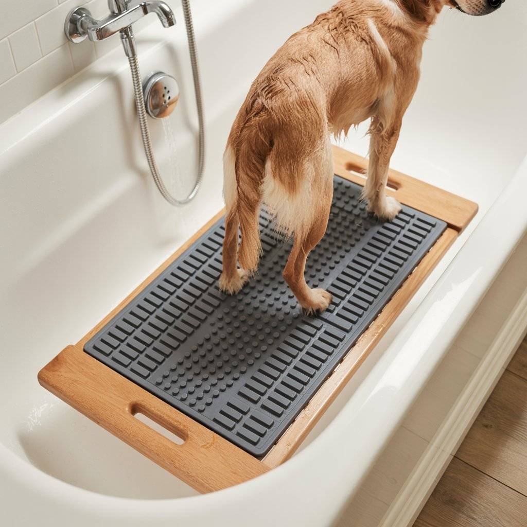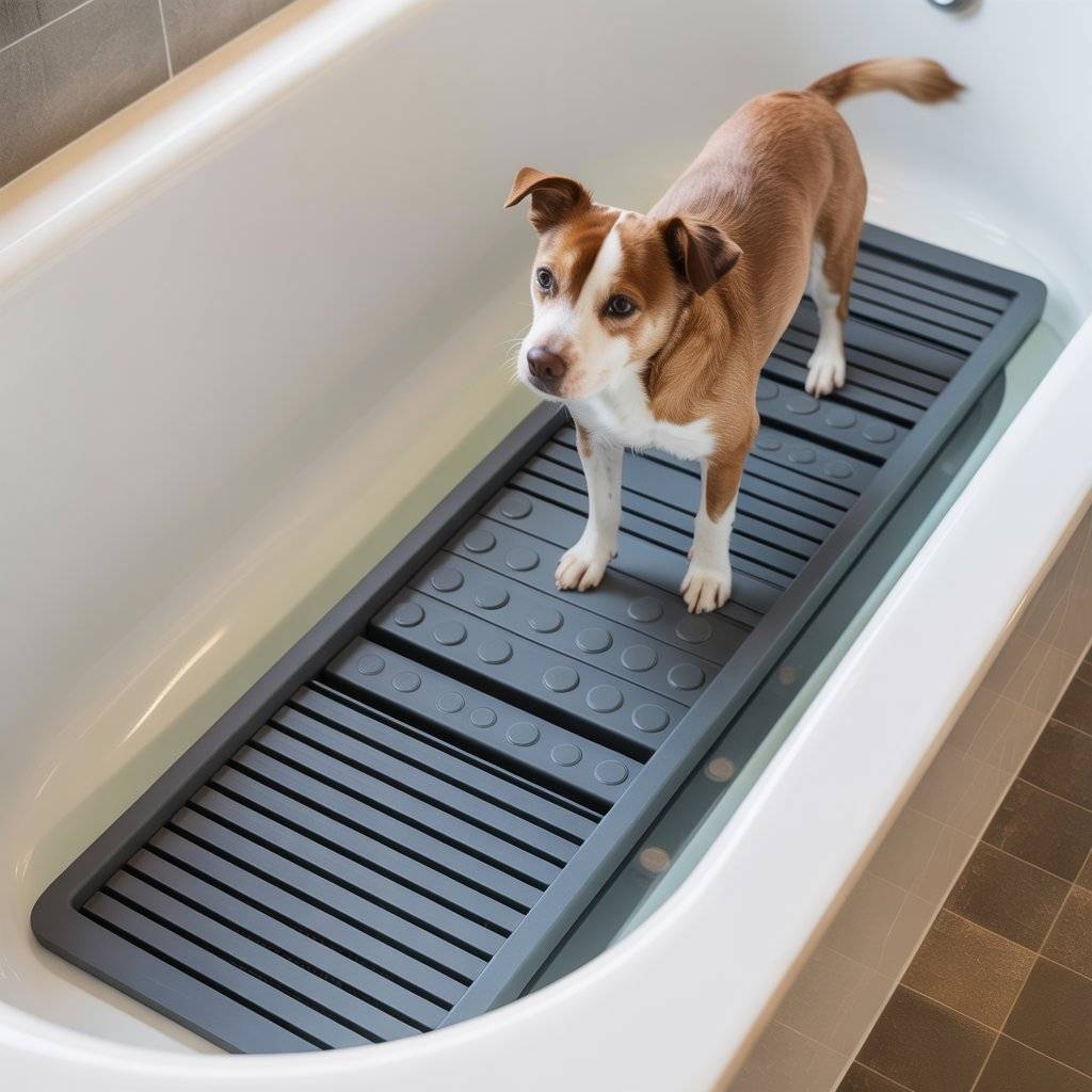 This idea is great if you don’t want major installs but want better traction and control. It works for small to medium dogs and helps avoid the usual “dog slide” that makes bath time messy.