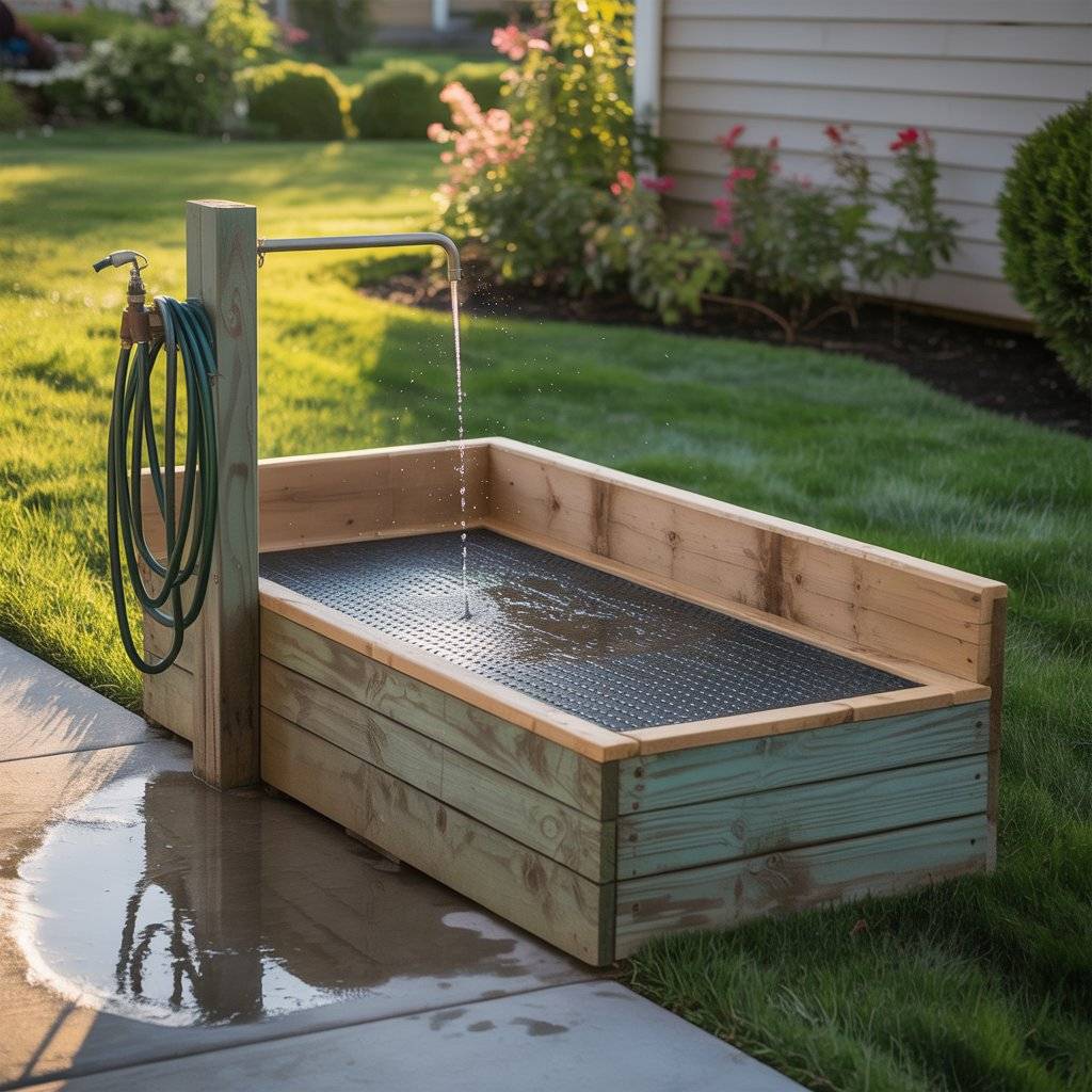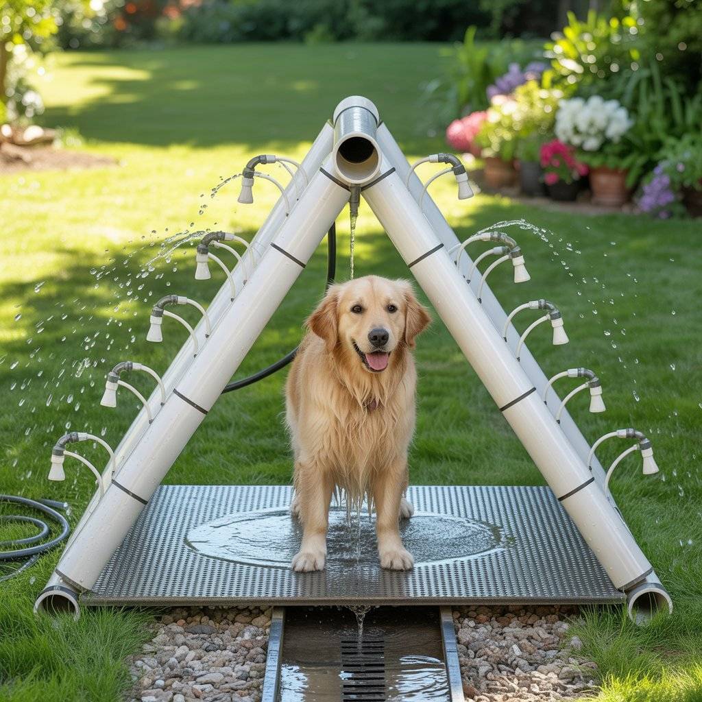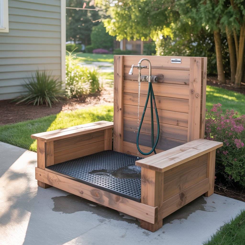 The benefit of this setup is how clean it keeps your indoor space. I don’t have to deal with wet floors or dog hair in the shower   everything stays outside. After the bath, I just hose down the area and let it dry in the sun. For bigger dogs, adding a non-skid ramp makes it easy for them to step in and out without struggling.