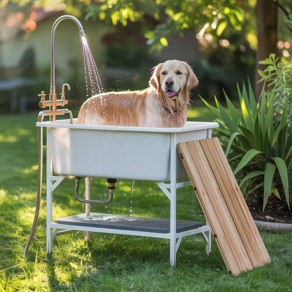 You can customize it with side hooks for towels and grooming tools, and even add a shade cover if you’re in a warm climate. It’s not fancy, but it’s efficient   especially for larger breeds or dogs who like to splash. For me, this became the go-to when the weather was nice and I just wanted a quick clean without chasing water around the yard.