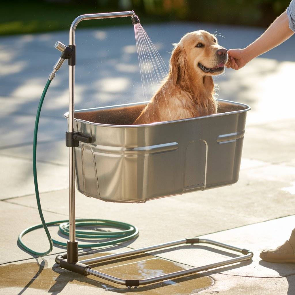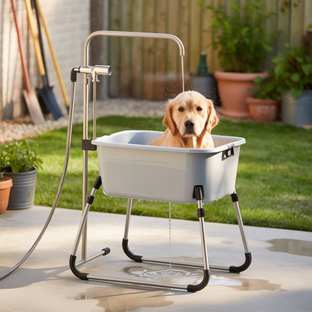 When I need flexibility or I’m short on space, a portable pet wash stand has been a reliable solution. These stands are basically frames with a removable tub you can move them from the garage to the backyard or even indoors during colder months. Many come with a built-in sprayer and hose hookup, which simplifies cleanup.