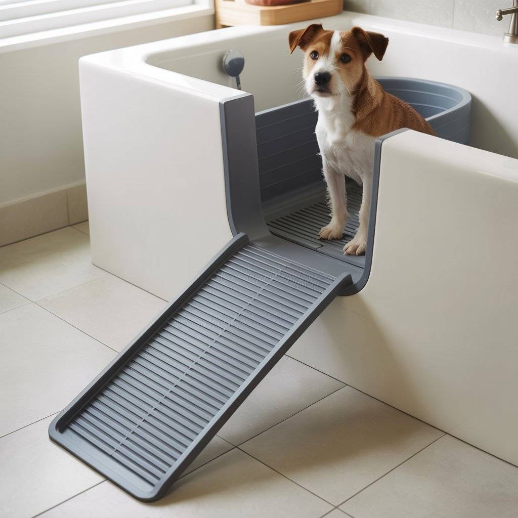 The key here is the gentle incline   it helps dogs enter the bathing space without fear, and the textured surface prevents slipping. I paired it with a tub insert that raises the water level just enough so my dog is comfortable without filling the tub completely. This keeps the mess down and reduces the chance of water splashing out.