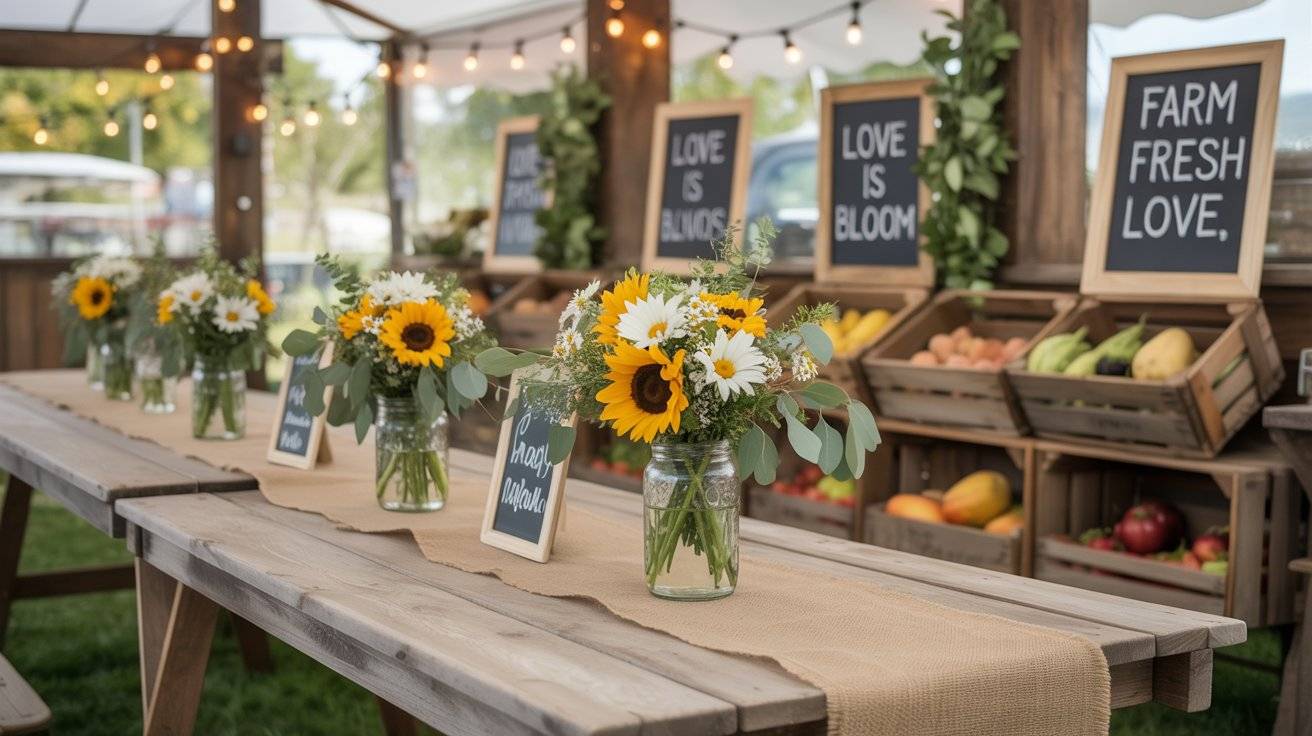 What I learned is this theme works best when you stop trying to “decorate” and instead start thinking like a market vendor. Markets are simple. They use wood, crates, chalkboards, fresh produce, and flowers that are actually in season. That’s it.