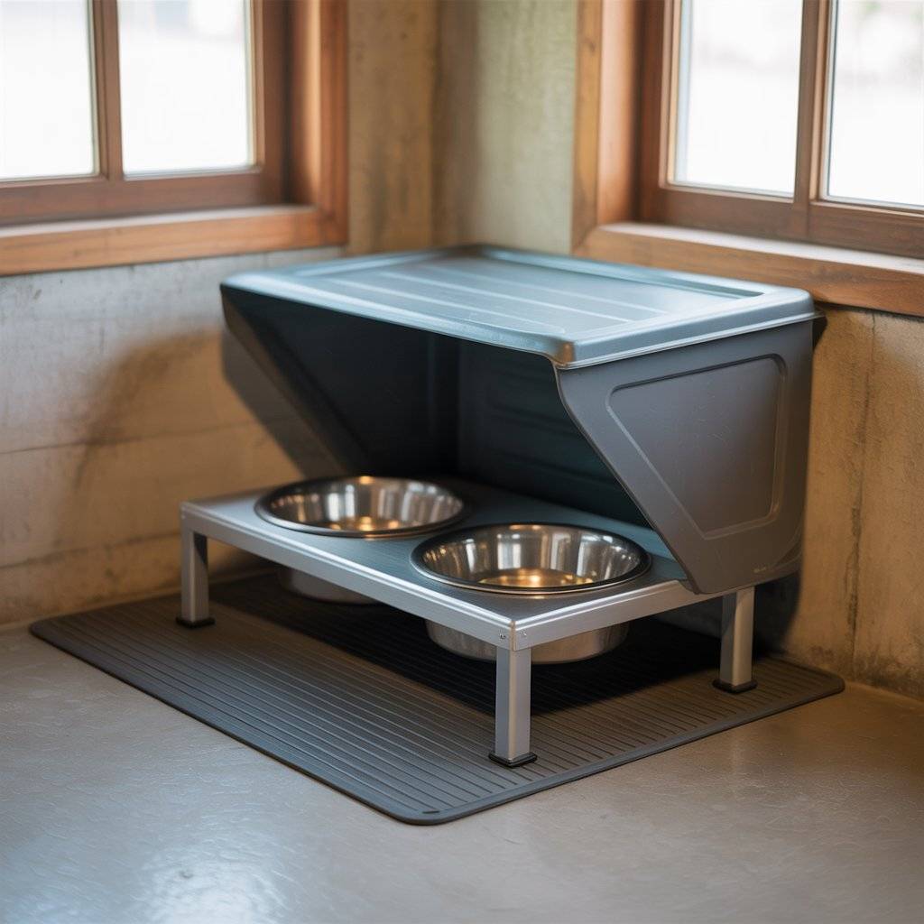 If your dog eats in the garage or inside a pen, a covered feeding spot helps more than you’d think. I learned this after dealing with wet food and dusty bowls.