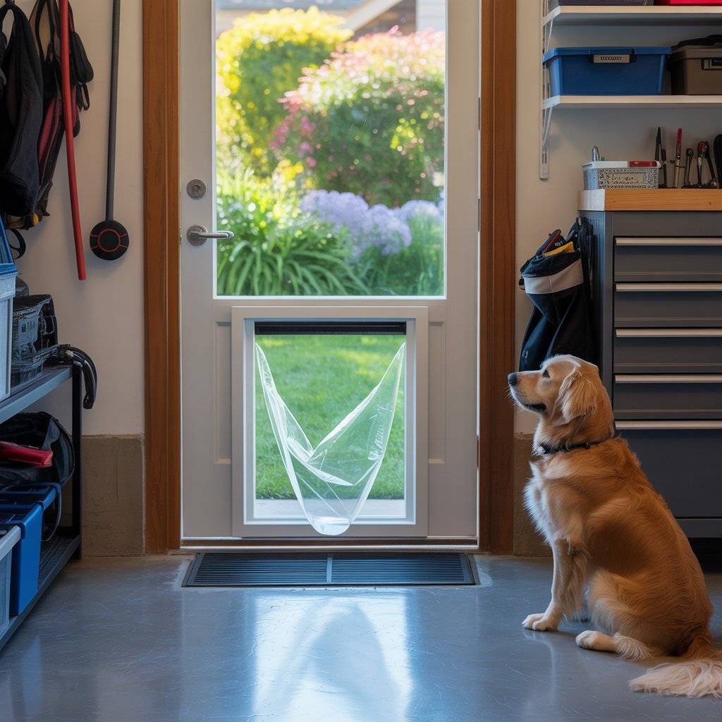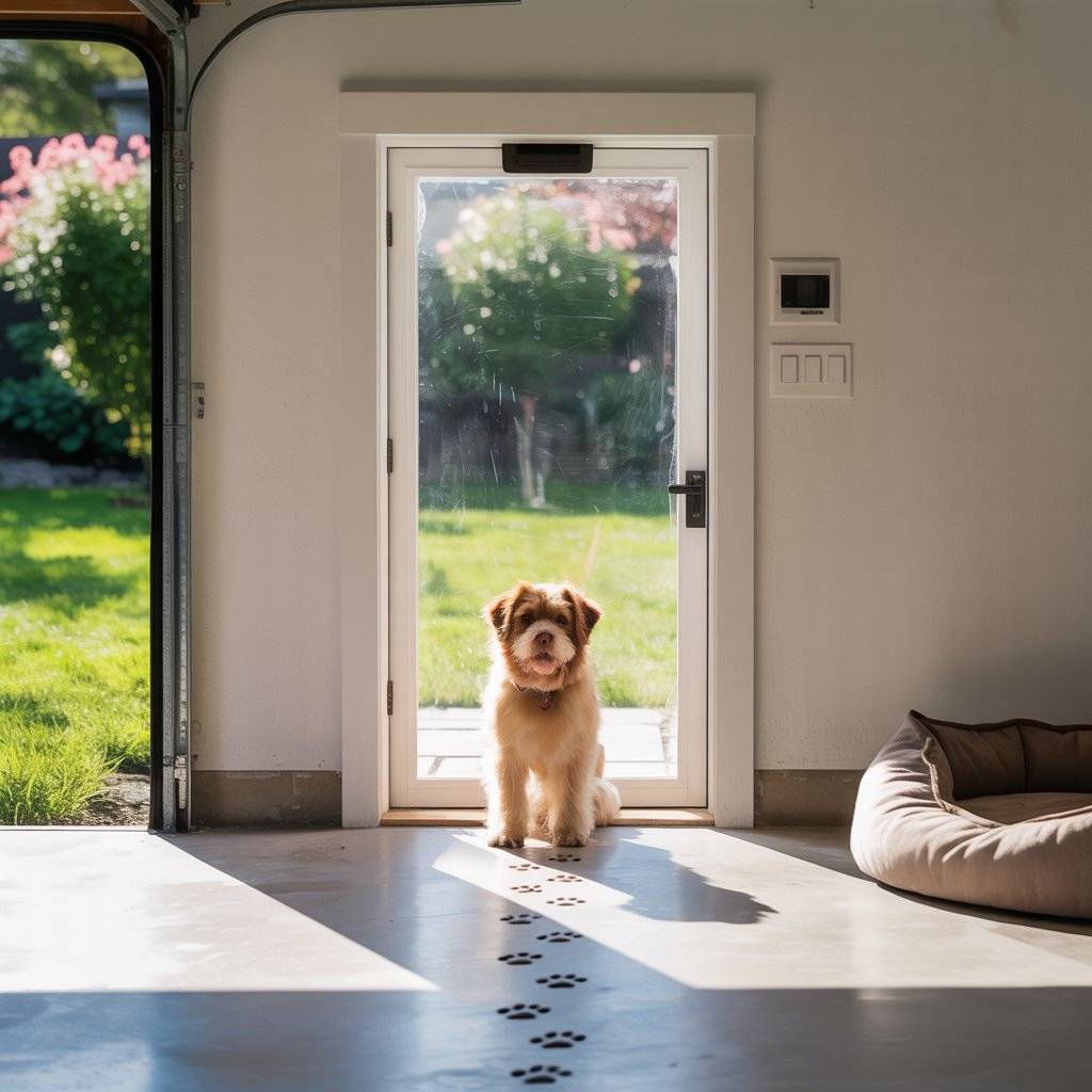 If your garage opens to the backyard, adding a doggy door lets your pet choose when it wants to go outside. This works great if the weather is mild but you still want a safe garage base.