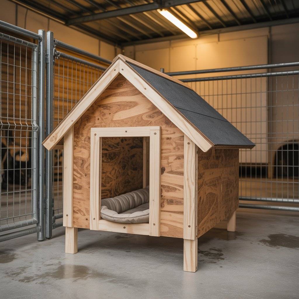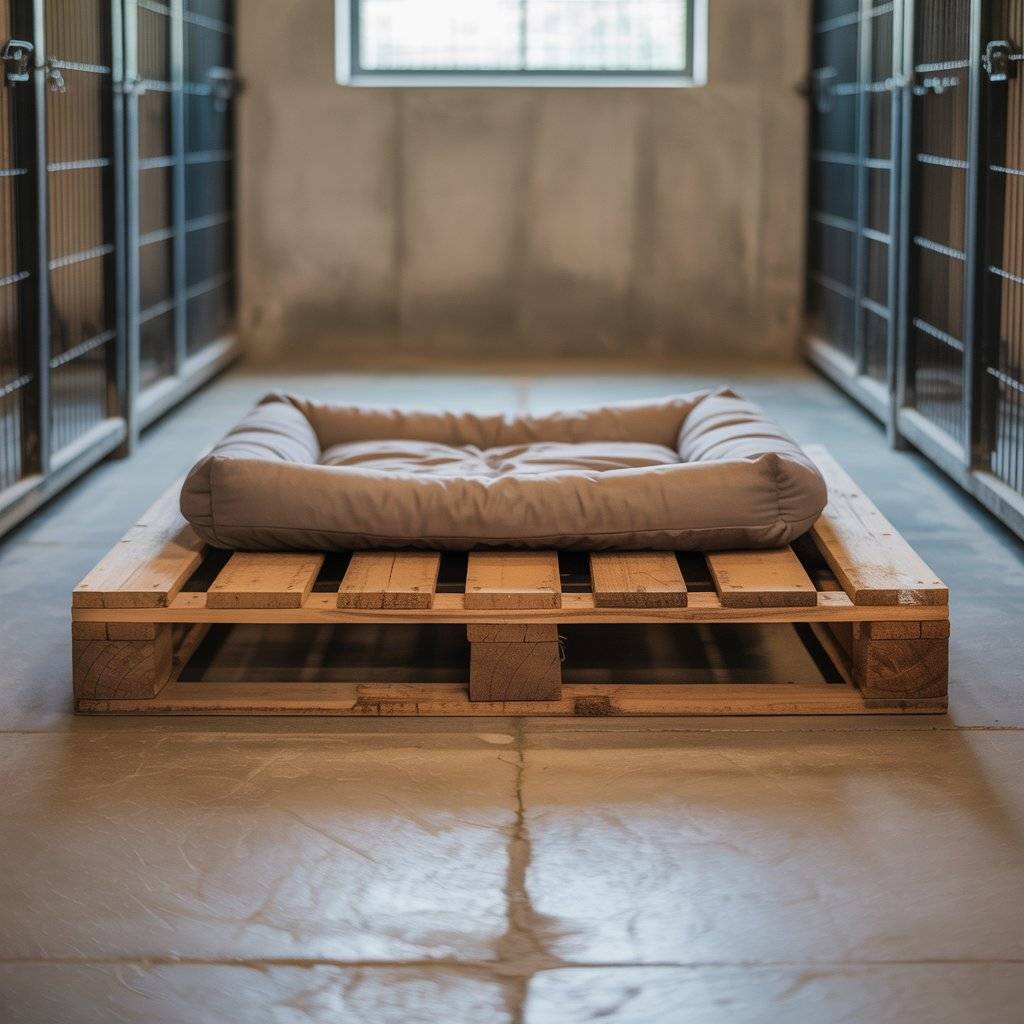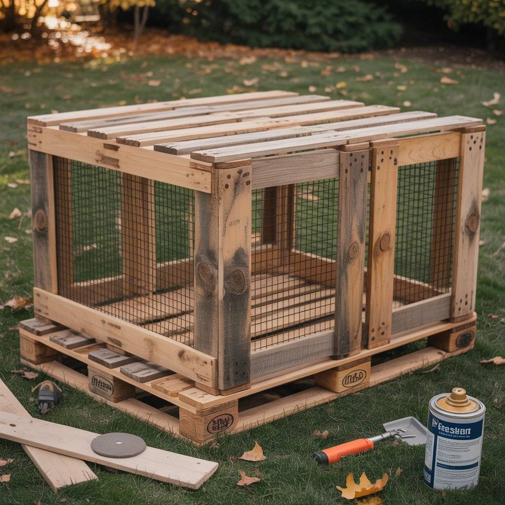 Pallet wood has gaps, so it’s a good idea to line the inside with mesh or metal panels so your dog can’t get its paws stuck. This is a great way to recycle materials and build something sturdy on a budget.