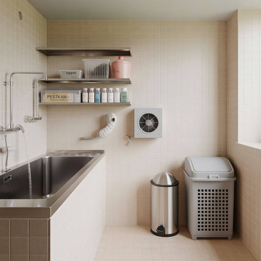 - Covered trash and laundry: Use a lidded bin for used wipes and a vented hamper for damp towels.