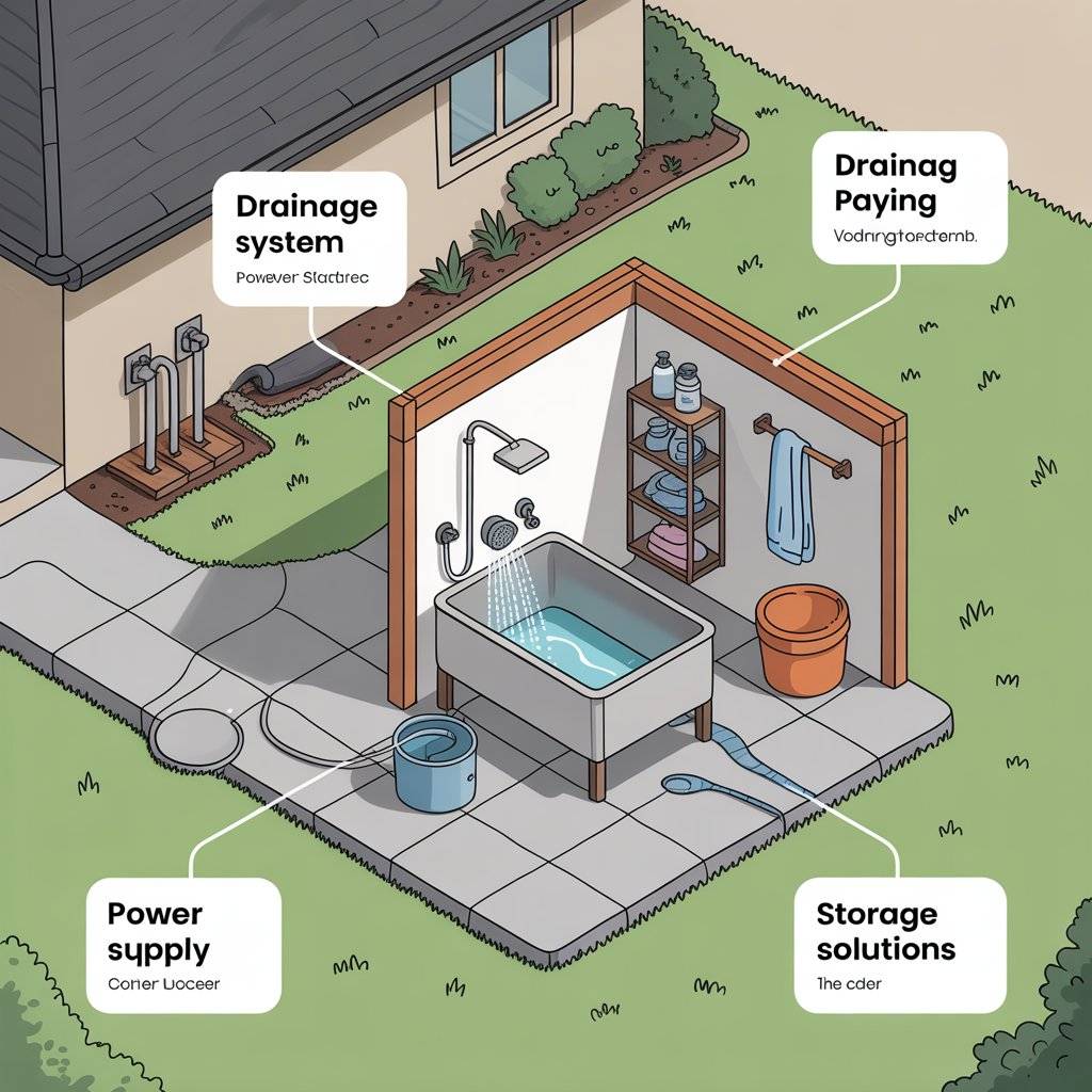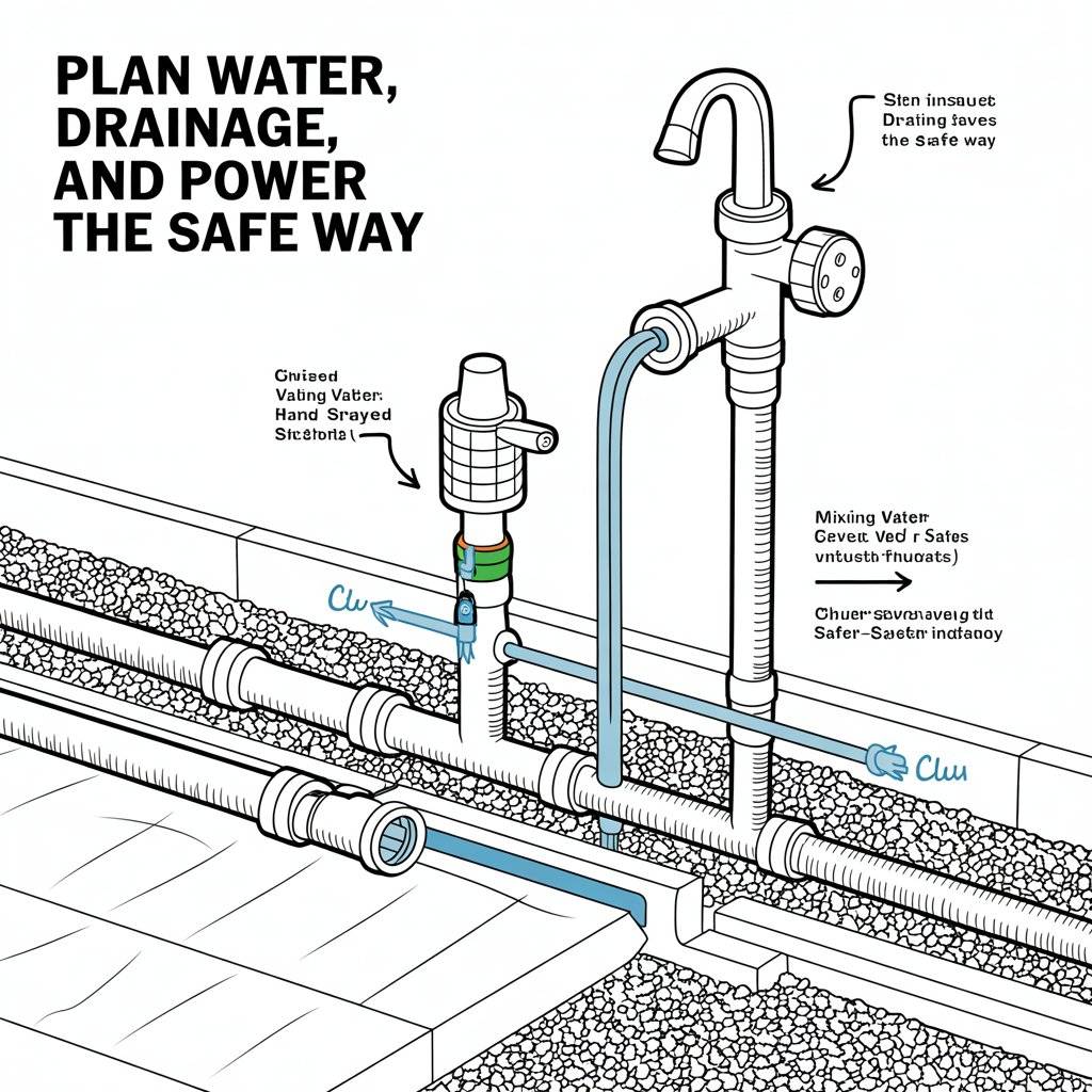 This is the build section you can follow with a weekend plan. You will prep a solid base, add safe hot and cold water, set the tub or pad, then finish with comfort and storage. Keep a bucket and towels nearby. Test as you go and fix small issues before they turn into leaks or puddles.