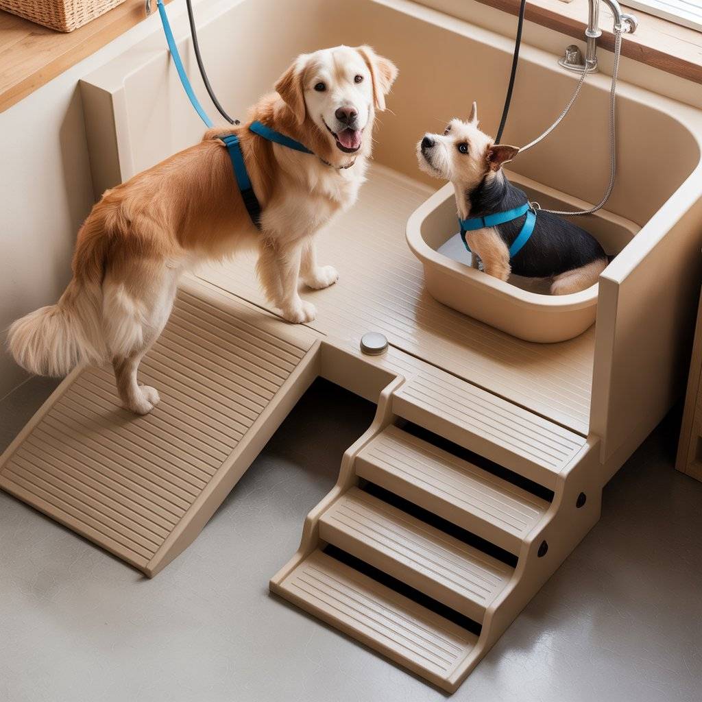 - Rounded edges on tubs, steps, and ledges to protect paws and shins.