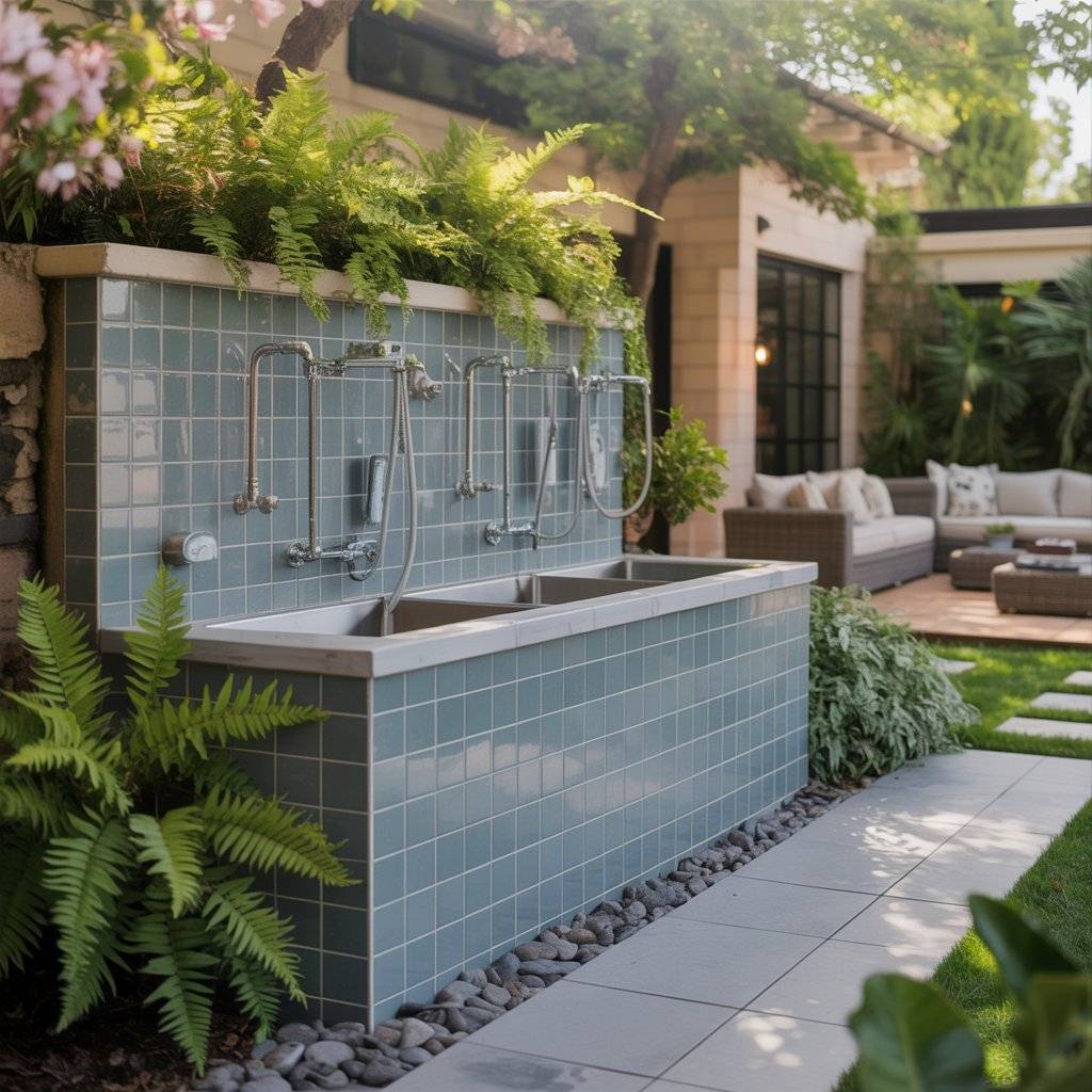 A stylish wash zone signals care and quality, which lifts the entire yard. When it blends with a patio or garden, it reads as a feature, not a utility corner. Place it near an outdoor shower, kitchen, or seating area to create a cohesive setting that looks intentional.
