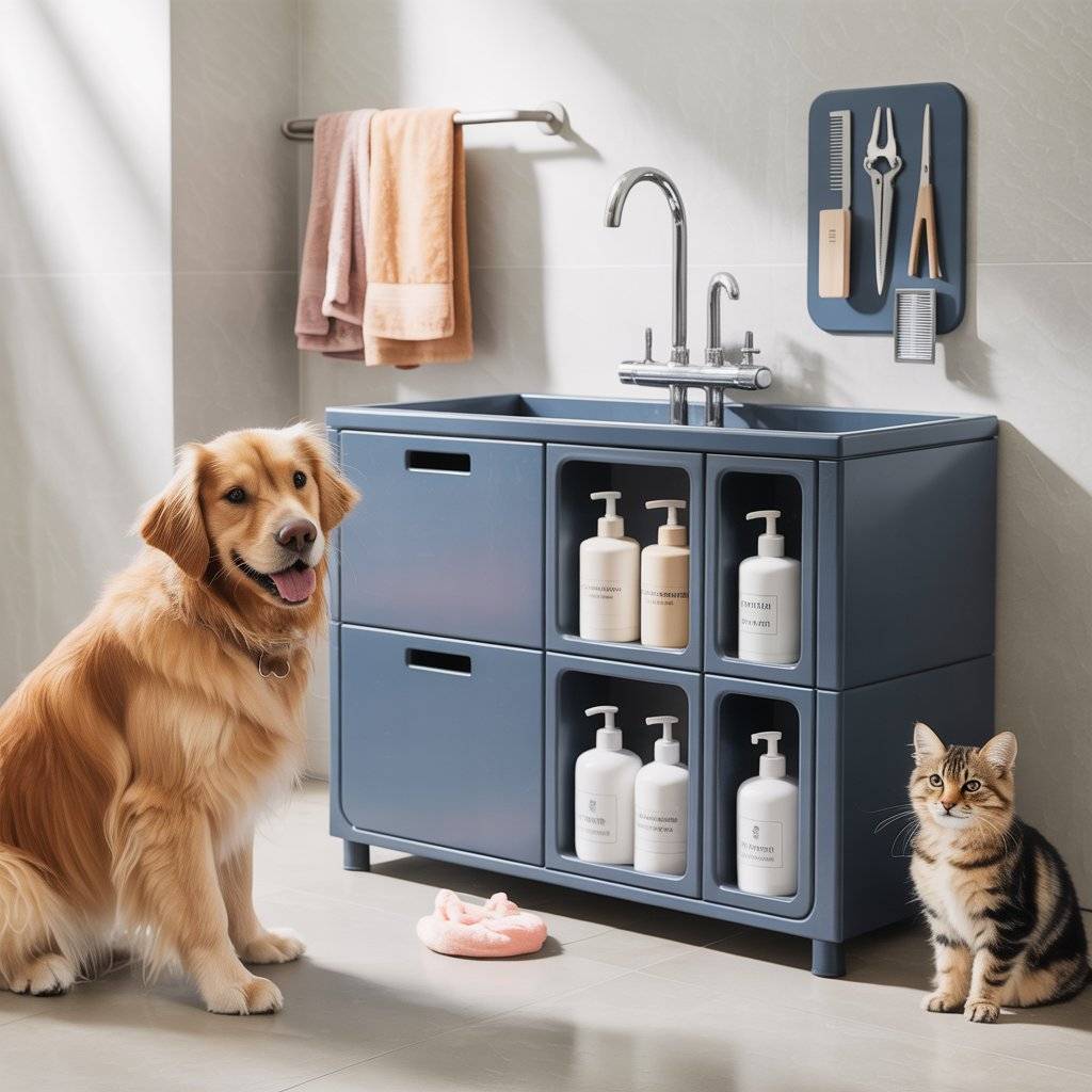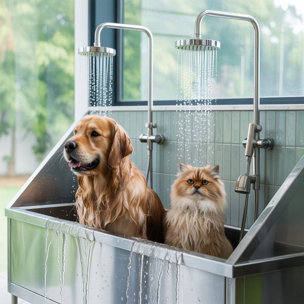 Think sleek stainless fixtures that resist rust and wipe clean. You can peak gentle rain shower head for rinses, plus a handheld sprayer for paws and undercoats. Add built-in storage for shampoos, towels, and leashes, and you have a polished space that stays tidy.