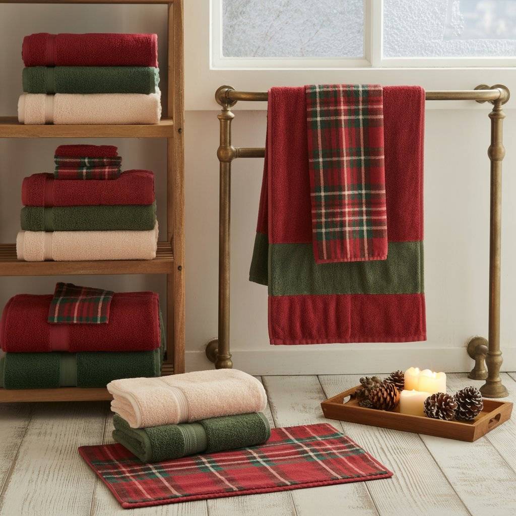 This gives a gentle holiday feeling without making the room look busy. It also keeps your main towels neutral and cozy.