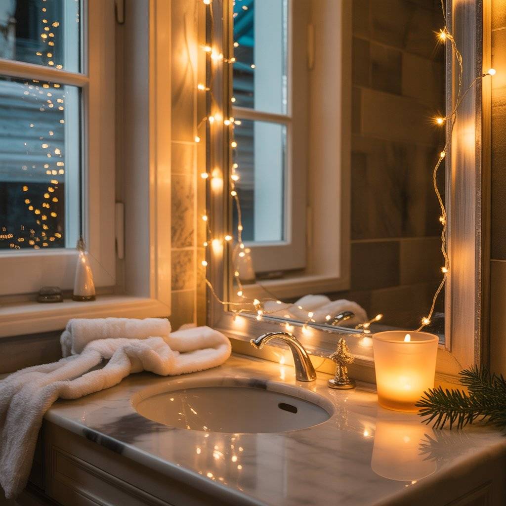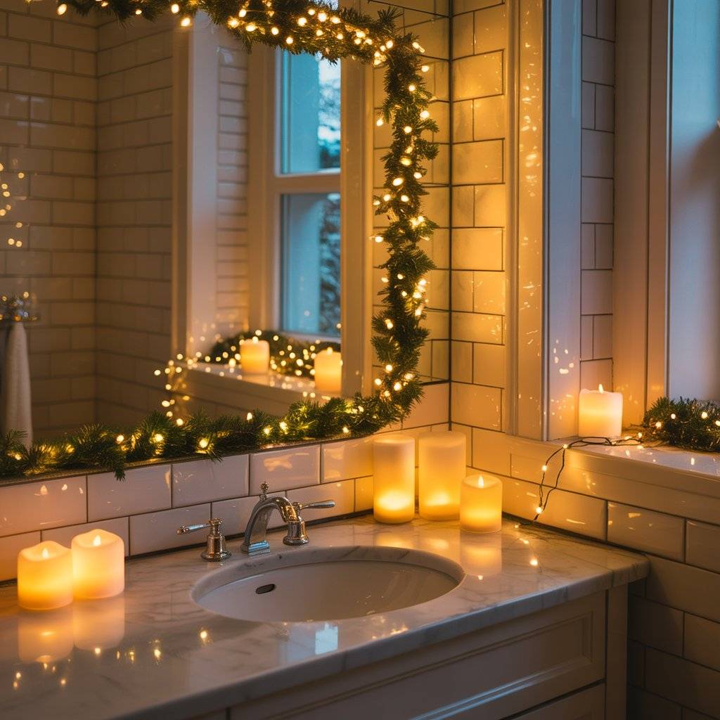 They give a soft glow and a little seasonal smell without any risk near water. Even a single candle can make the bathroom feel special for the holidays.