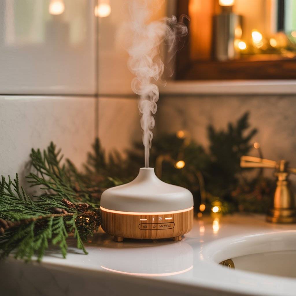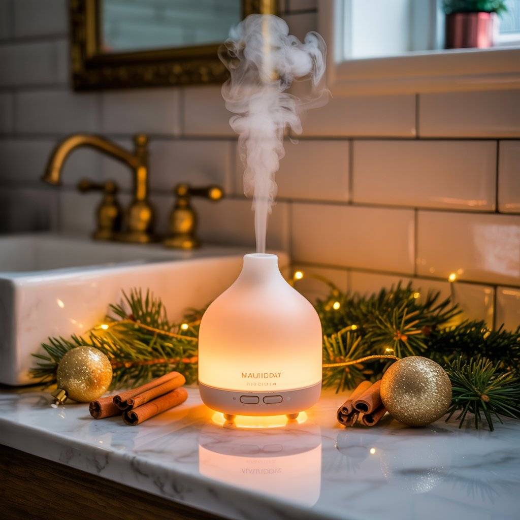 Finally, a small diffuser can make your bathroom smell like Christmas instantly. Choose scents like cedar wood, cinnamon, pine, or vanilla. A tiny diffuser adds warmth without taking up space or risking flames near water.