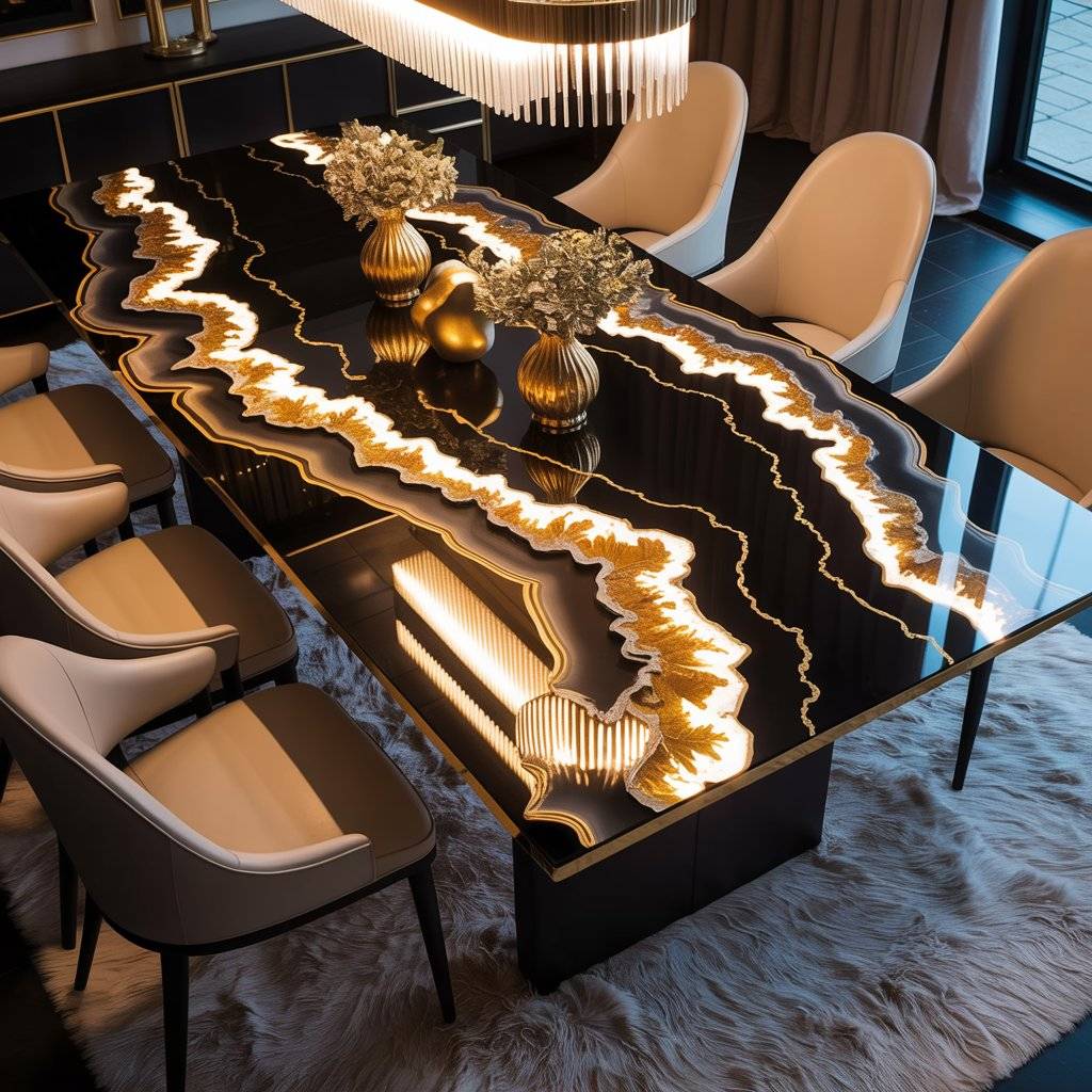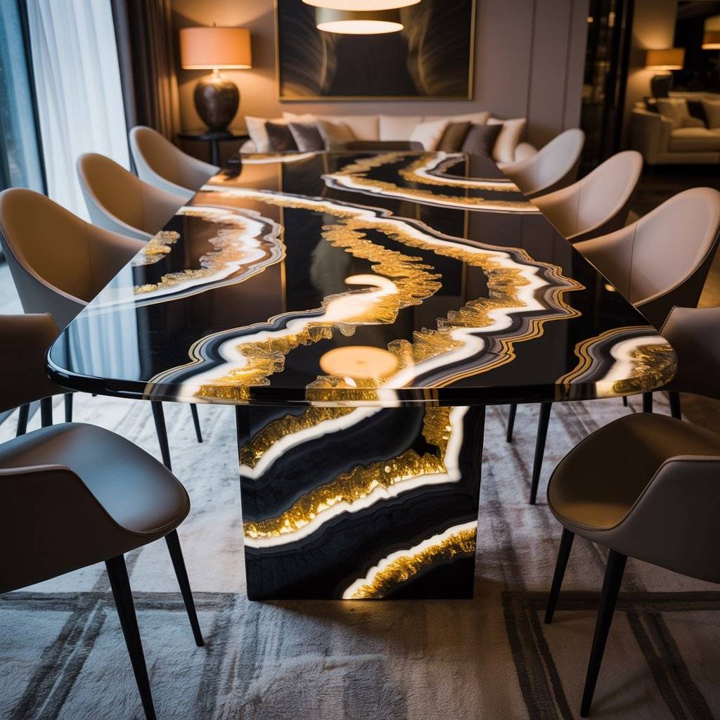 - Luxury Gold Geode Epoxy Dining Table With Black Gloss Finish - November 7, 2025