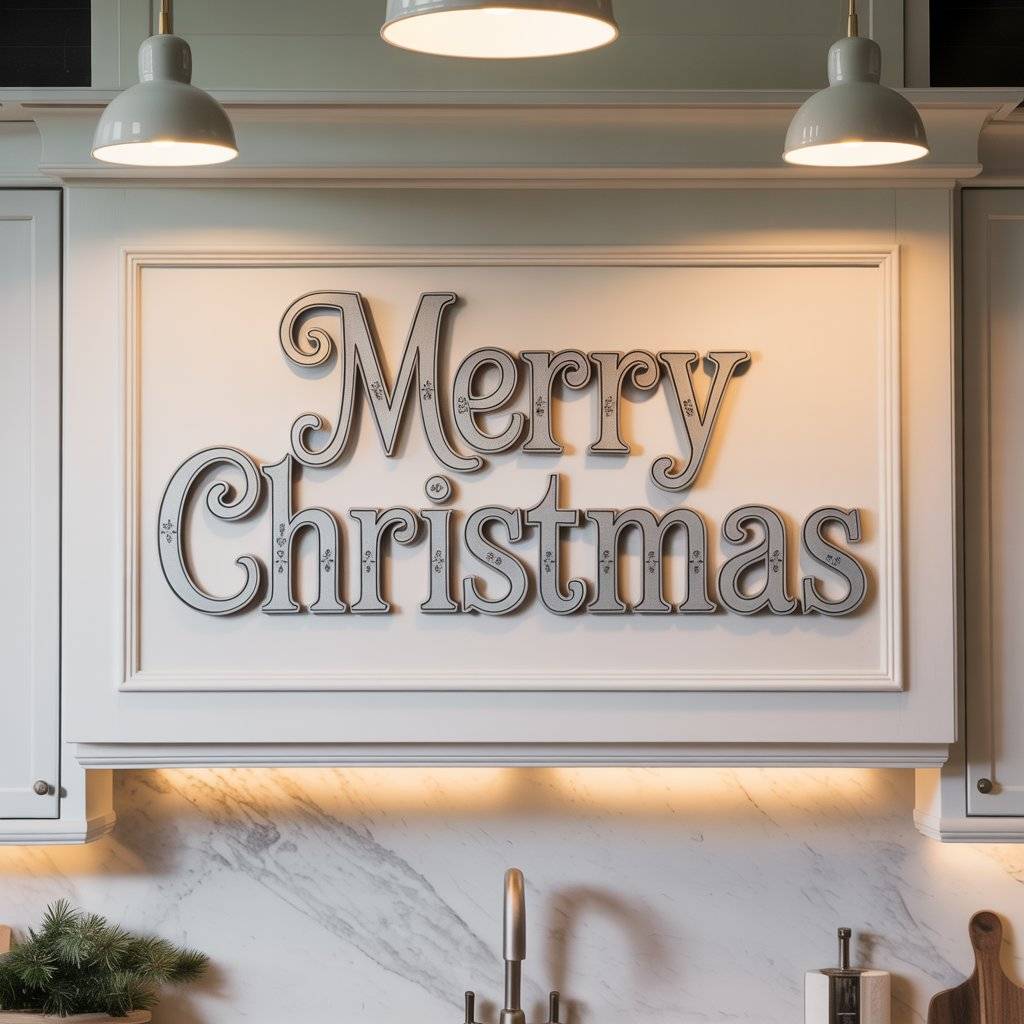 how, lightweight aluminum signs can be scratch-resistant and water-resistant, so they work well in kitchen environments. gathered.how Choose a simple greeting (“Merry Christmas”, “Noel”) or a vintage-style design. It makes a bold statement but isn’t too fussy, and stays durable even around splashes or heat.