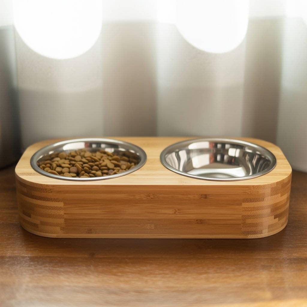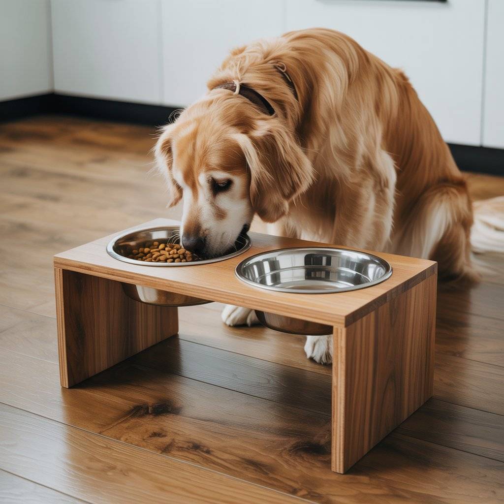 An elevated bamboo feeder blends modern design with natural comfort. The raised height helps large dogs and senior pets eat without straining their necks, while the bamboo adds warmth and style to any room. Many come with stainless-steel bowls and anti-slip bases to keep everything steady during mealtime.