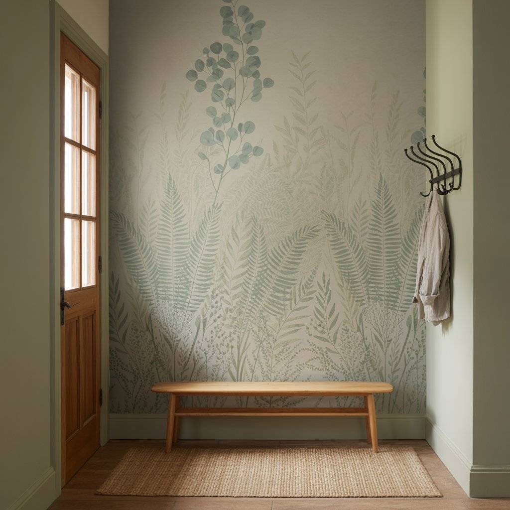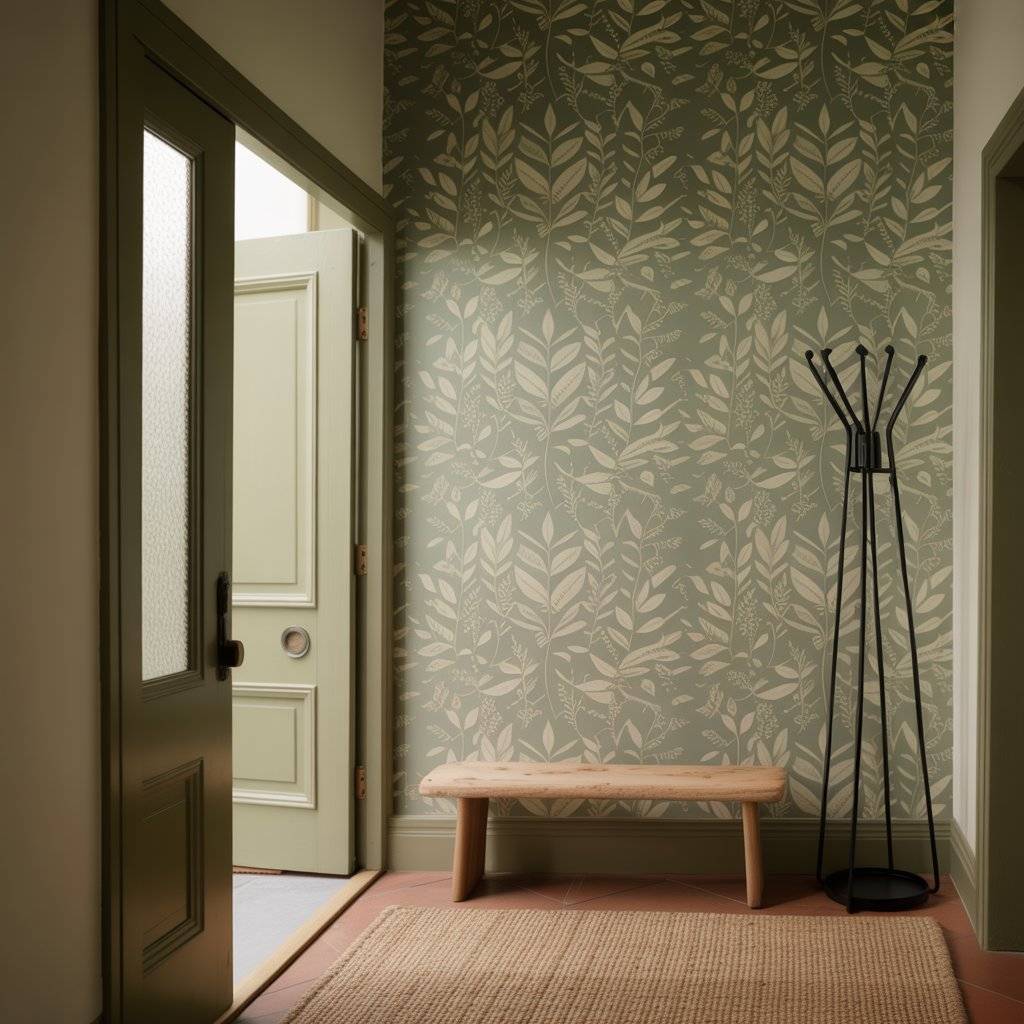 I’ve seen simple botanical or geometric patterns in soft sage tones that look beautiful in entryways. They add personality without feeling too busy. This works especially well on one accent wall near the door.