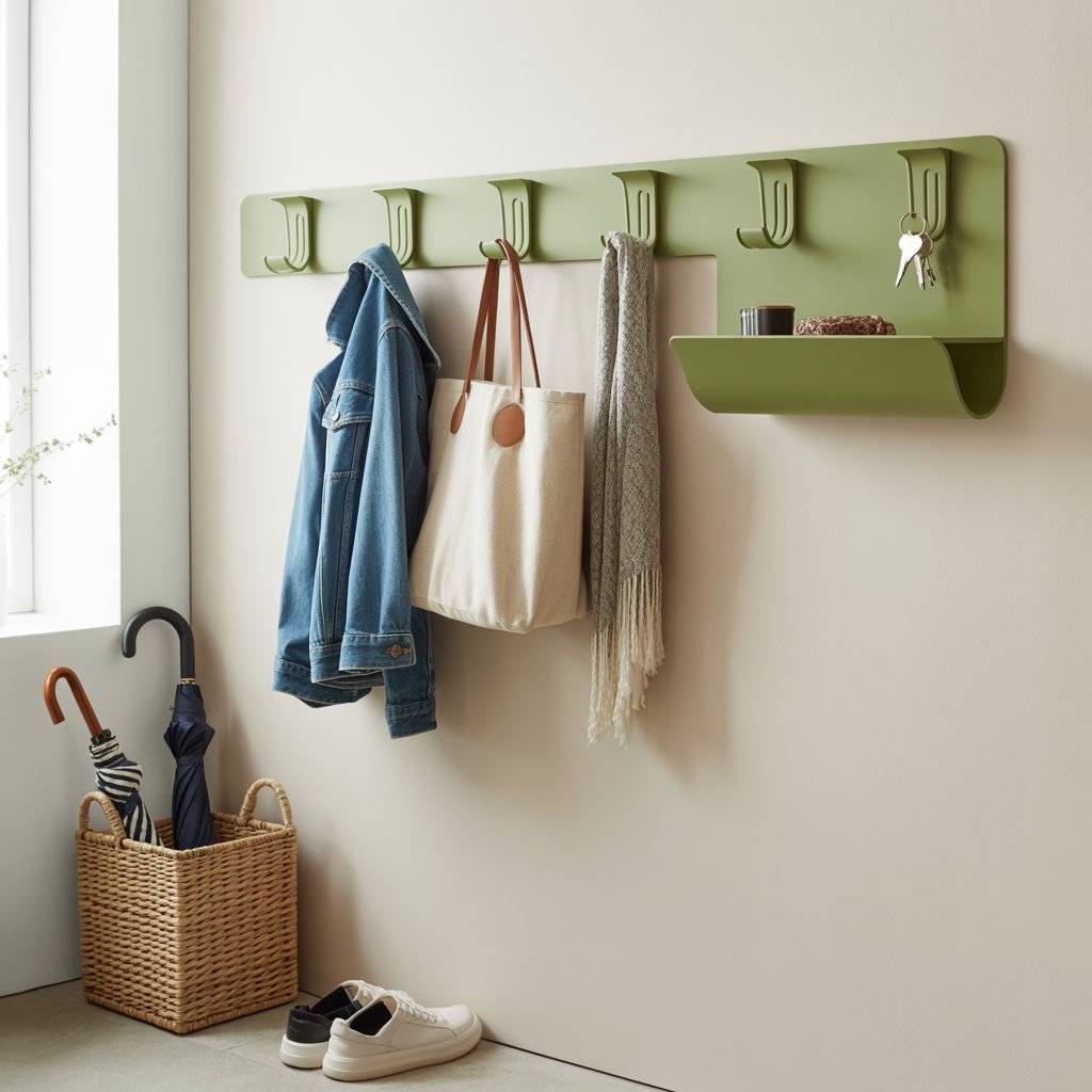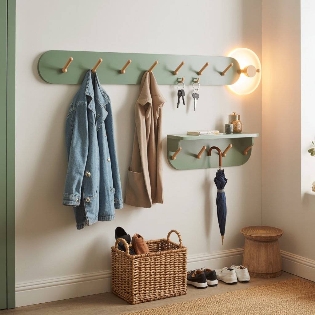 If you don’t want to repaint walls or furniture, small accents can still bring sage green into the entryway. One easy update is installing sage green coat hooks or wall organizers.