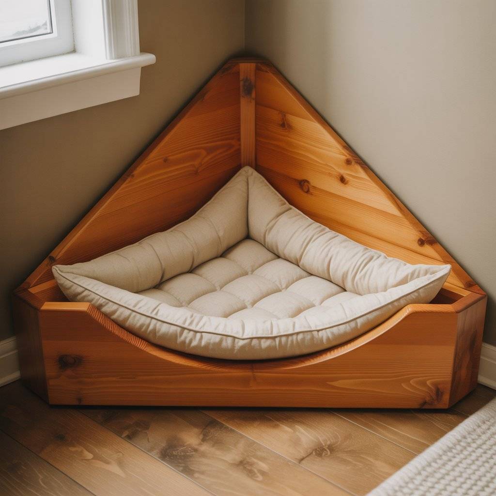 5. Corner Wooden Dog Bed for Small Spaces