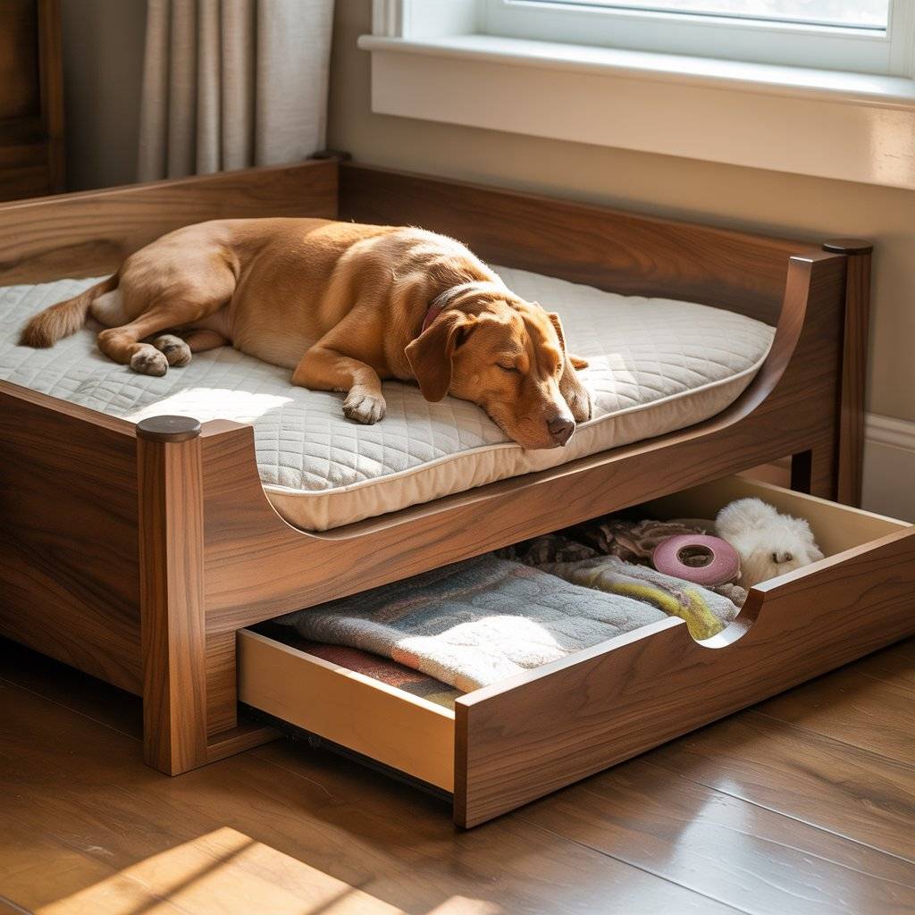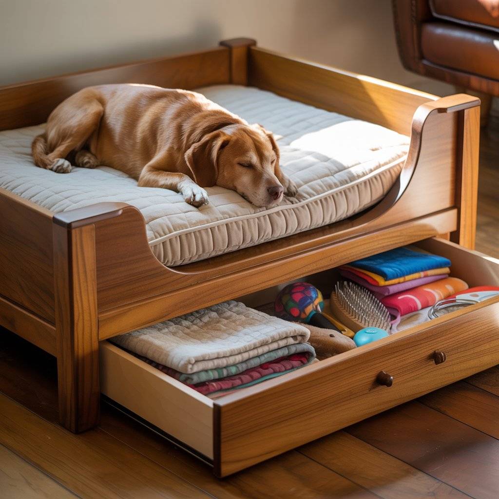 7. Drawer-Base Wooden Dog Bed