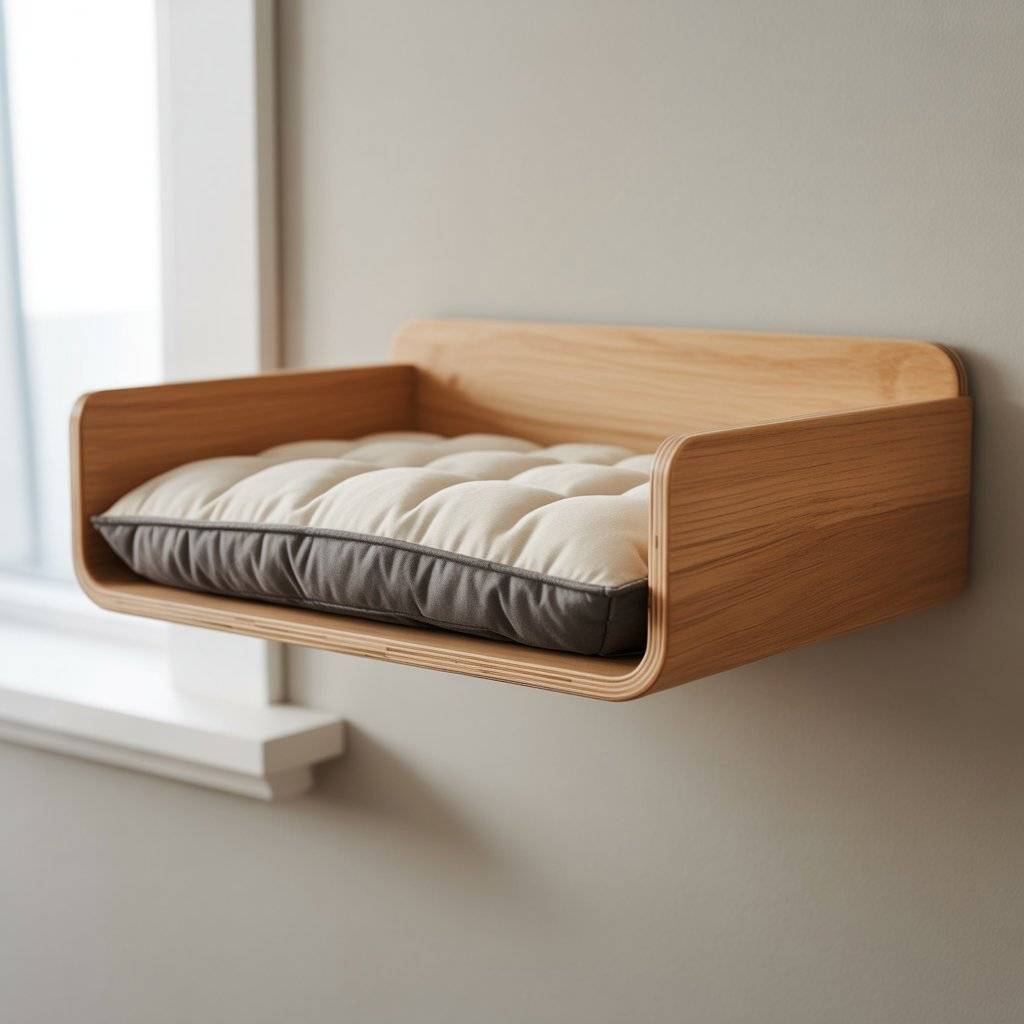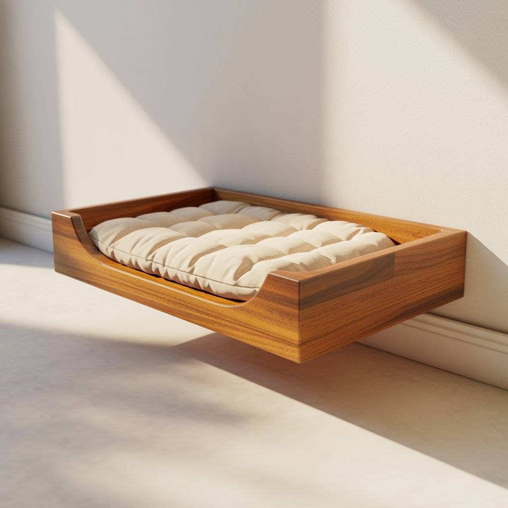 11. Floating Wooden Pet Bed (Wall-Mounted)