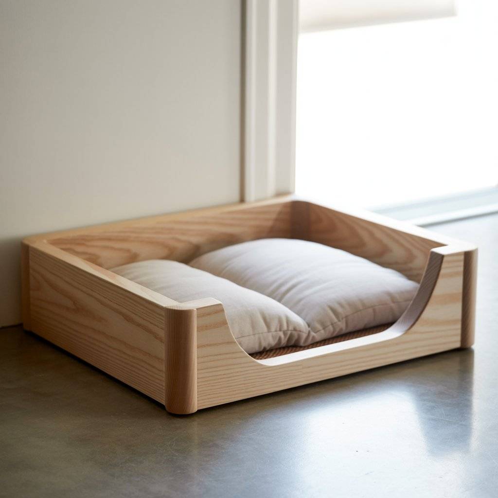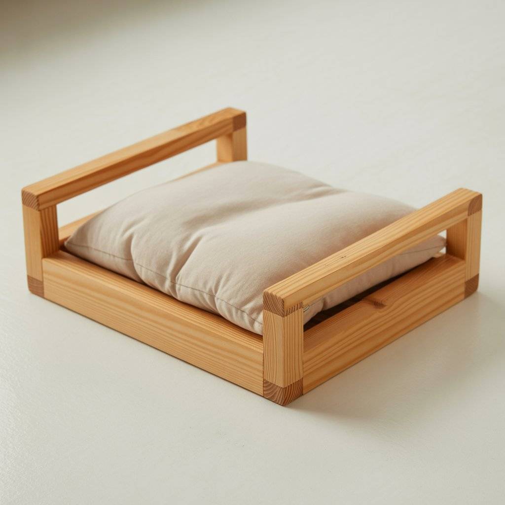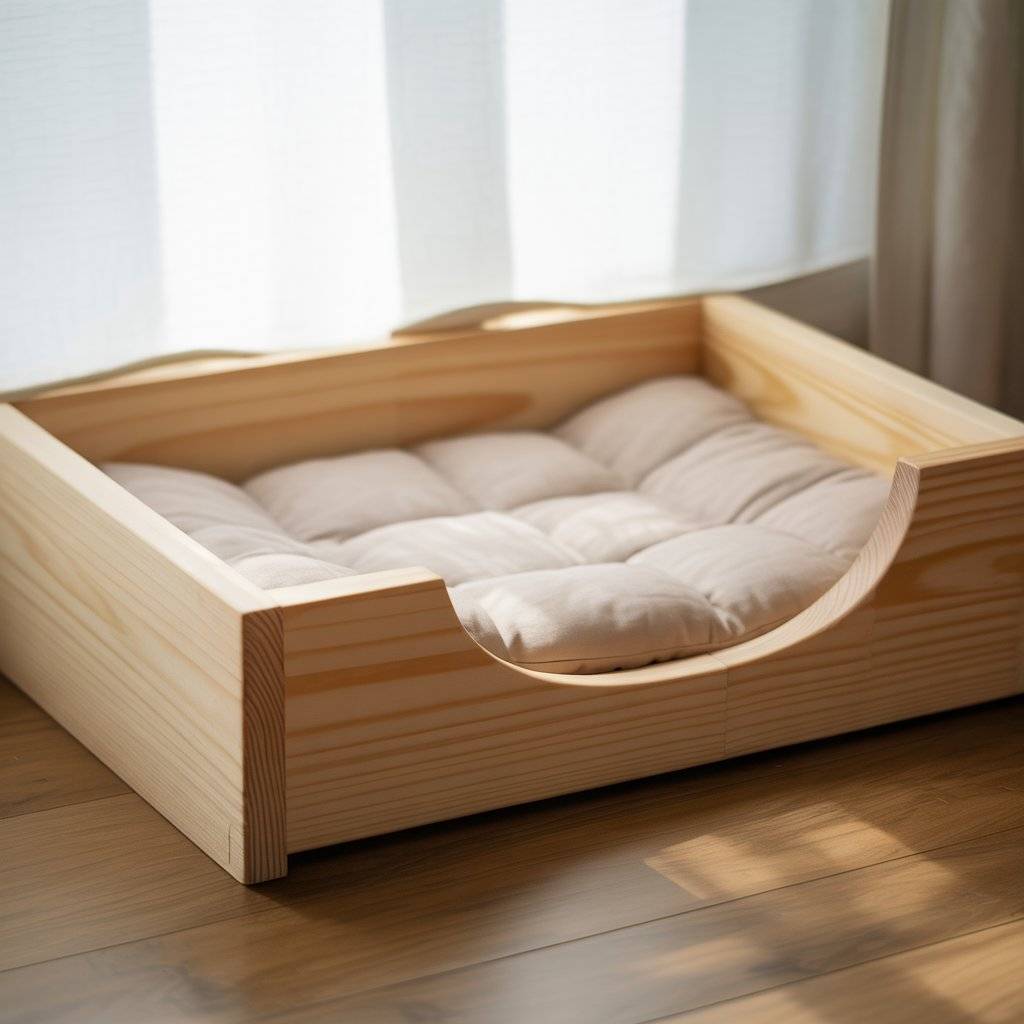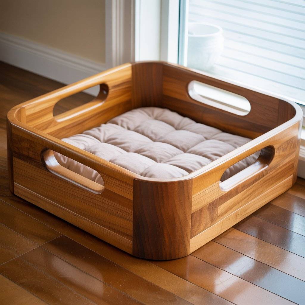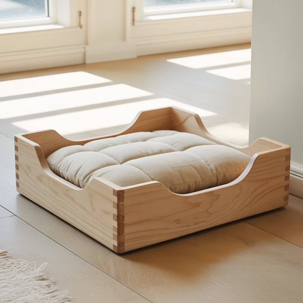 This is one of the most practical designs I’ve seen. A simple pine wood cat bed or dog bed, kept low to the ground, works well for small dogs and older cats. The frame doesn’t need much just clean joints, rounded edges, and a flat base that keeps the cushion in place. Pine wood is affordable, lightweight, and easy to work with, which makes this a realistic option for DIY or custom orders.