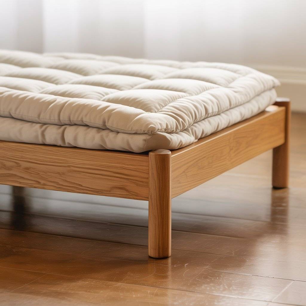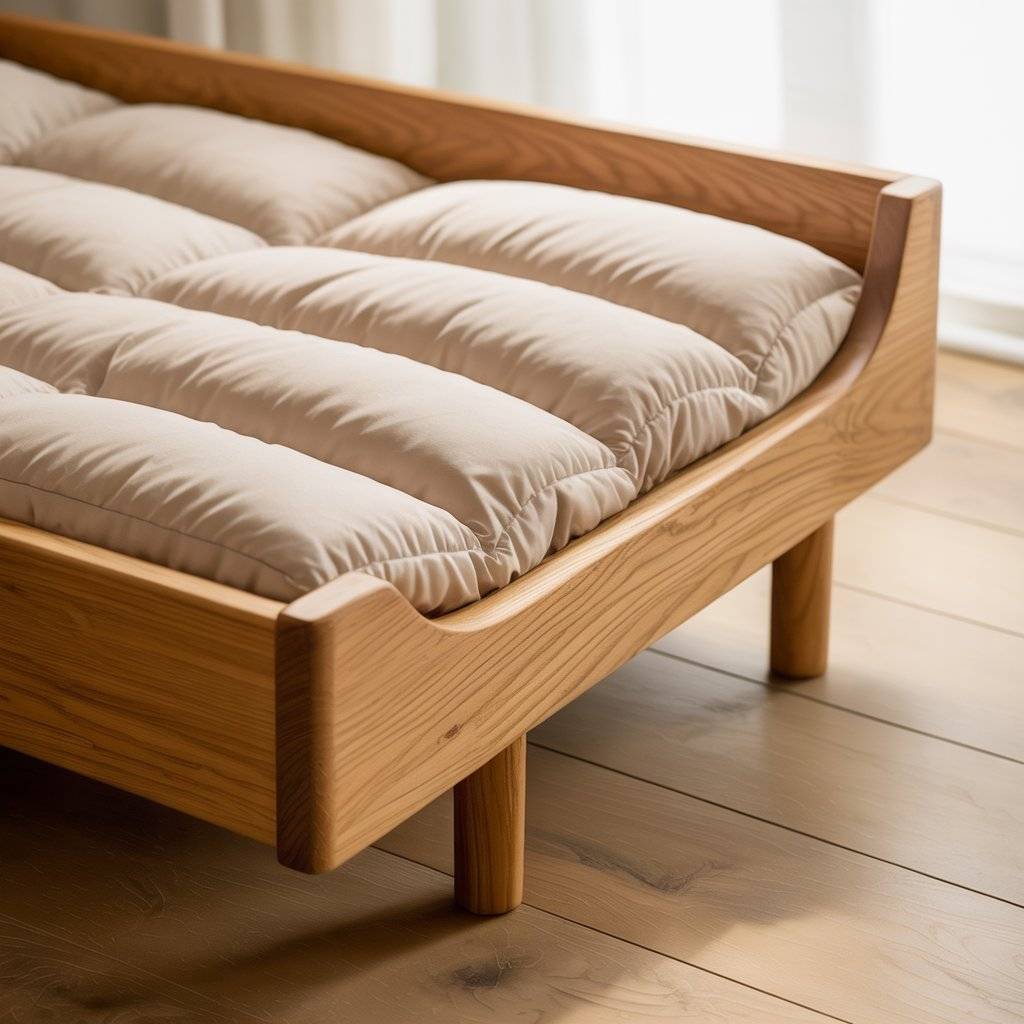 This design keeps things low and straightforward. A flat wooden frame with a thin quilted cushion works well for cats that prefer sleeping close to the floor. It gives them a comfortable spot without feeling heavy or oversized.