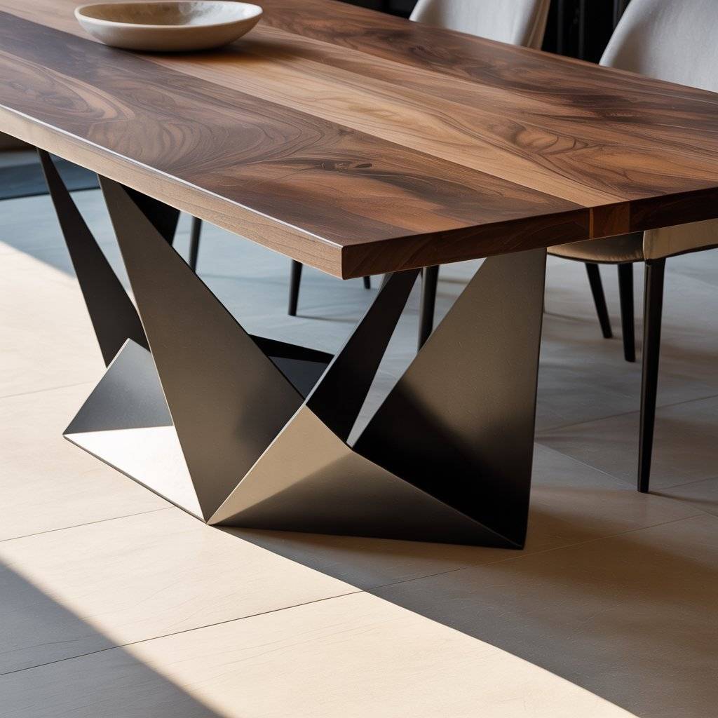 Pair a warm timber top with an unusual, geometric base and you gets modern sculpture that’s still inviting. It’s that balance of warmth and design that makes this style so compelling in contemporary homes. Keep chairs simple, pick a centerpiece that’s low and sculptural, and let the base be the unexpected detail.
