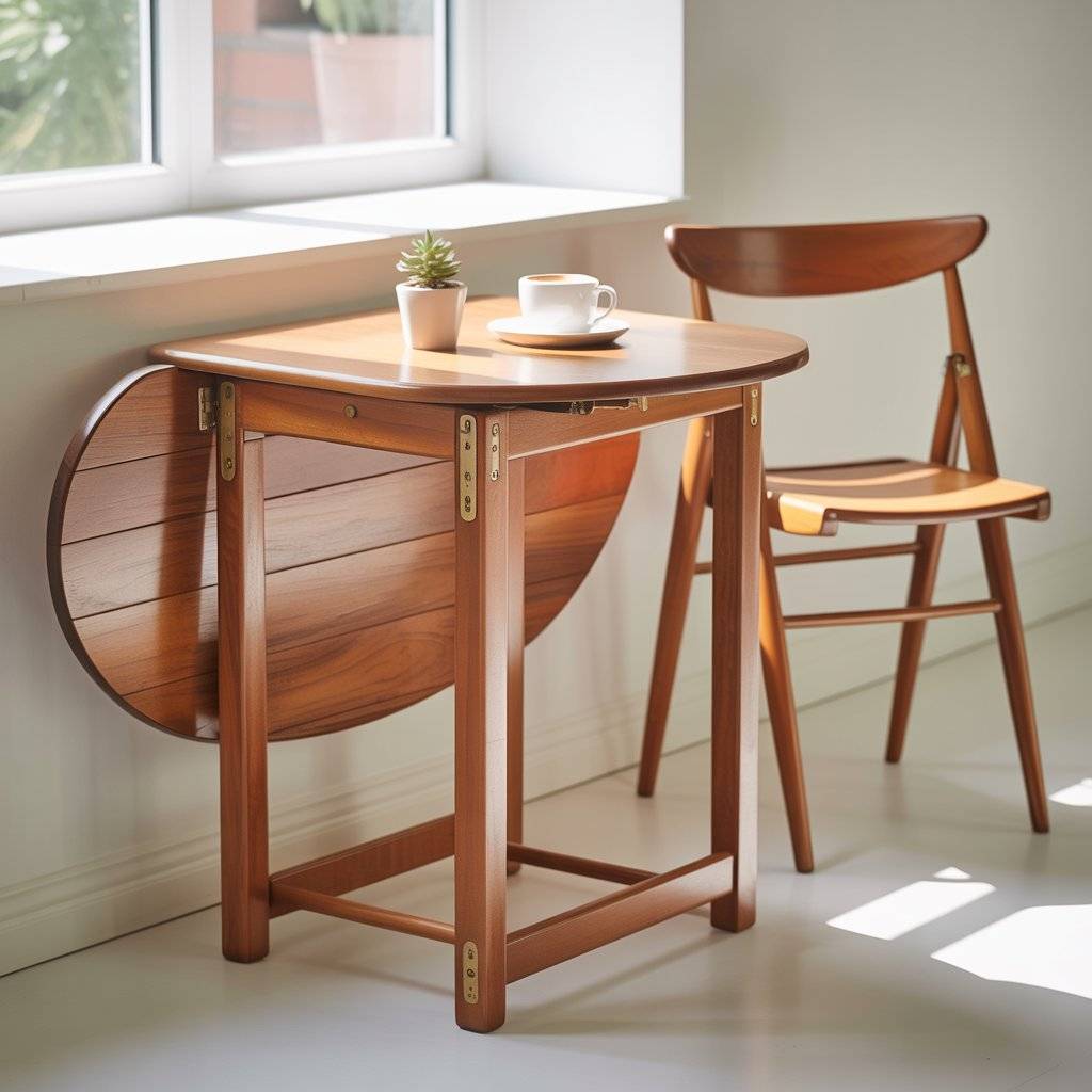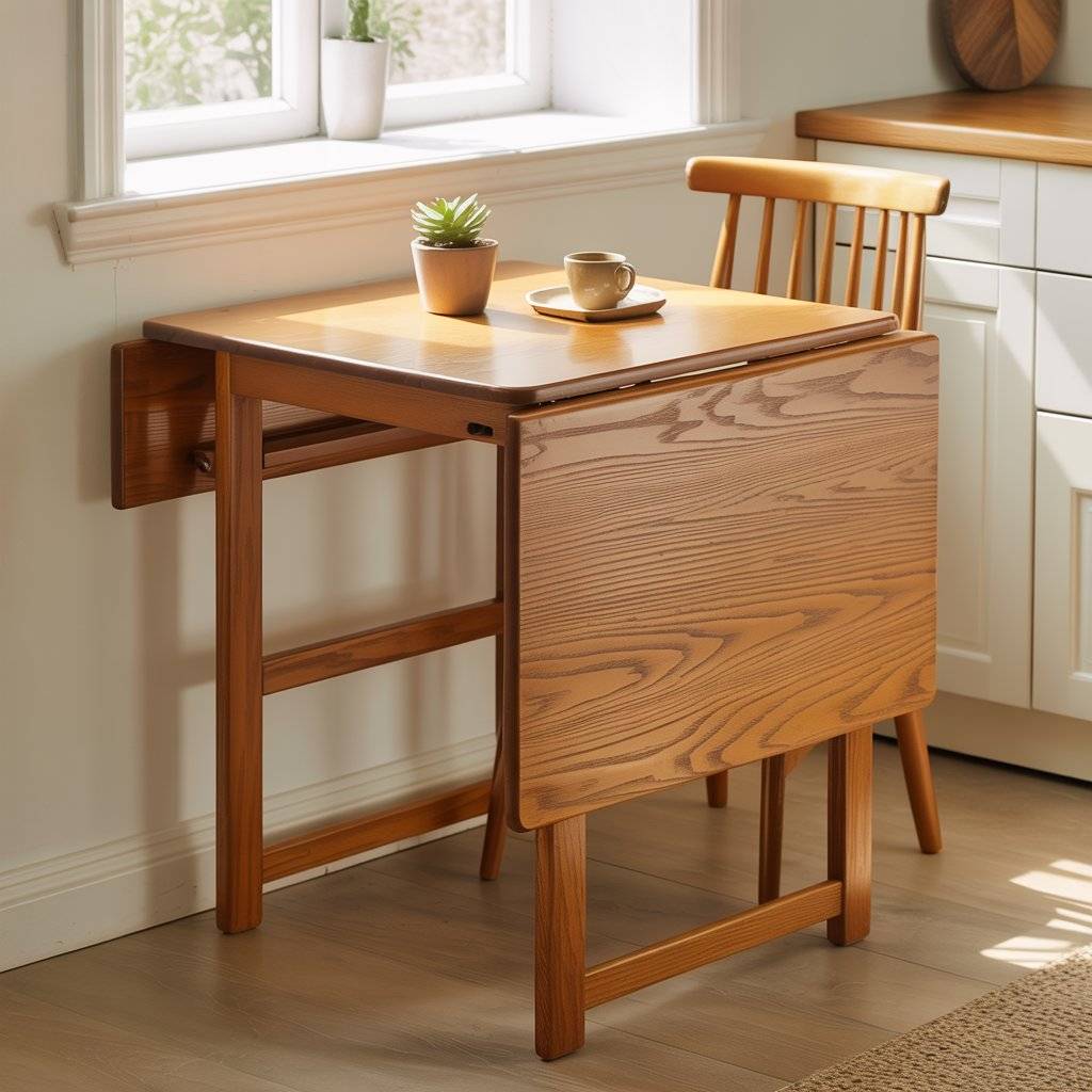 A foldable or drop-leaf wood table is a small-scheme hero. Living in a compact home doesn’t mean giving up on real wood.
